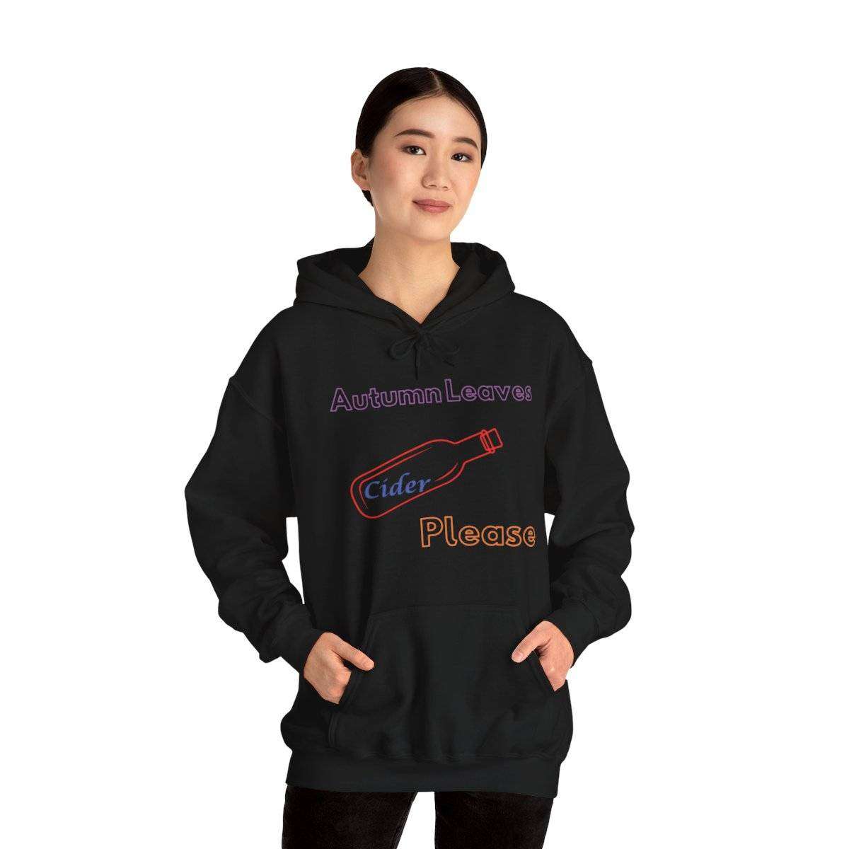 The Autumn Leaves Hooded Sweatshirt showcases the text “Autumn Leaves Cider Please” printed on the front. This cozy and stylish hoodie captures the essence of fall with its delightful message.
