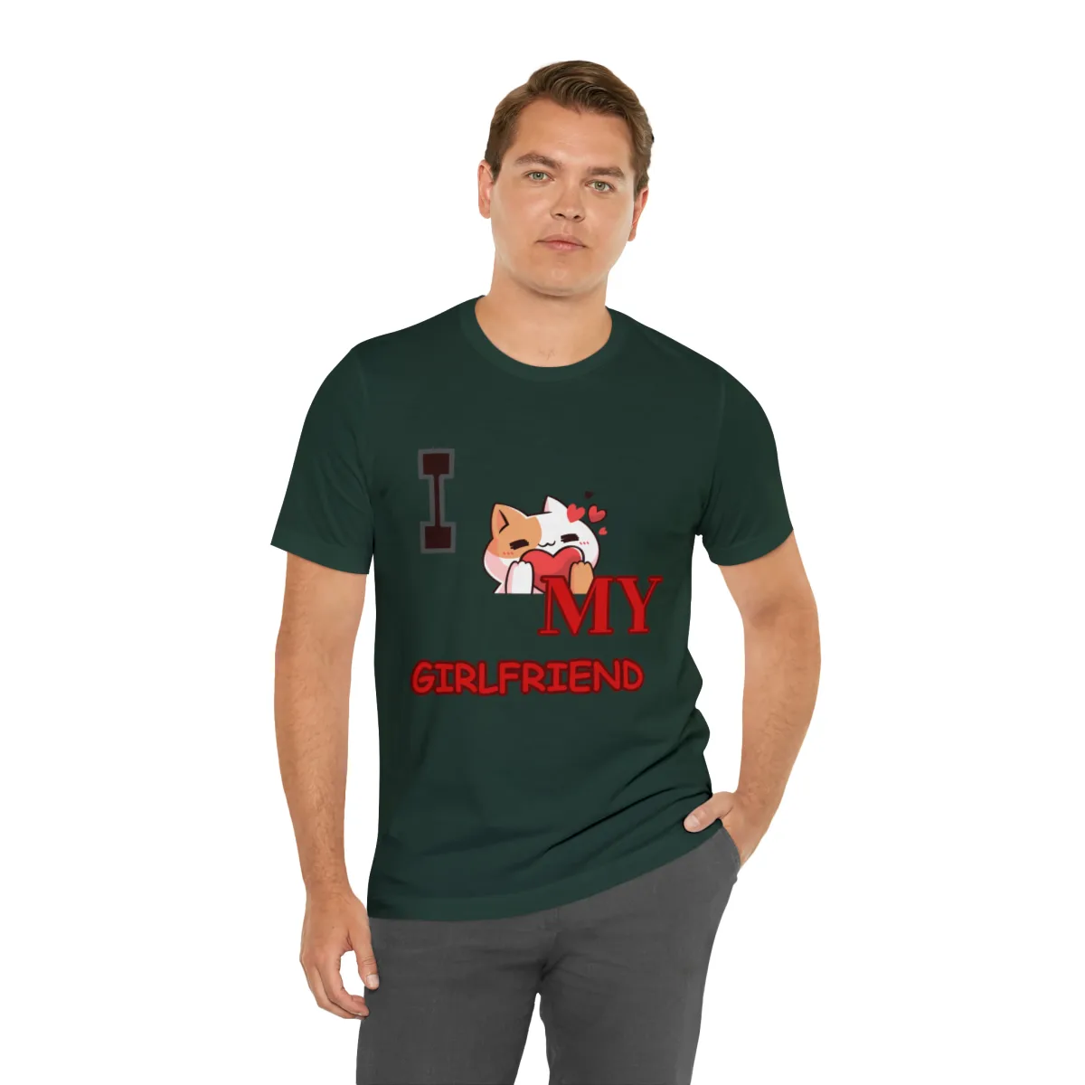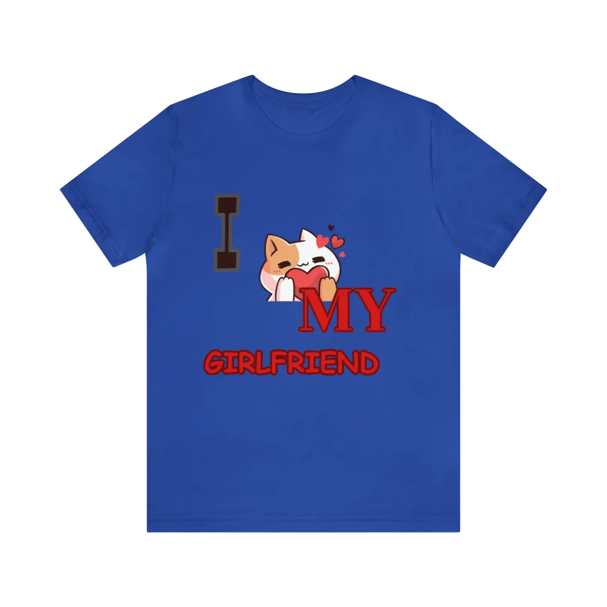 Show your love in the cutest way with the Awesome Cat Girlfriend T-shirt, a stylish and heartfelt design that’s perfect for cat lovers and romantics alike. The front of this t-shirt features the charming text “I love my girlfriend,” with the word “love” replaced by an adorable cat hugging a heart. This playful and creative design is sure to turn heads and warm hearts.