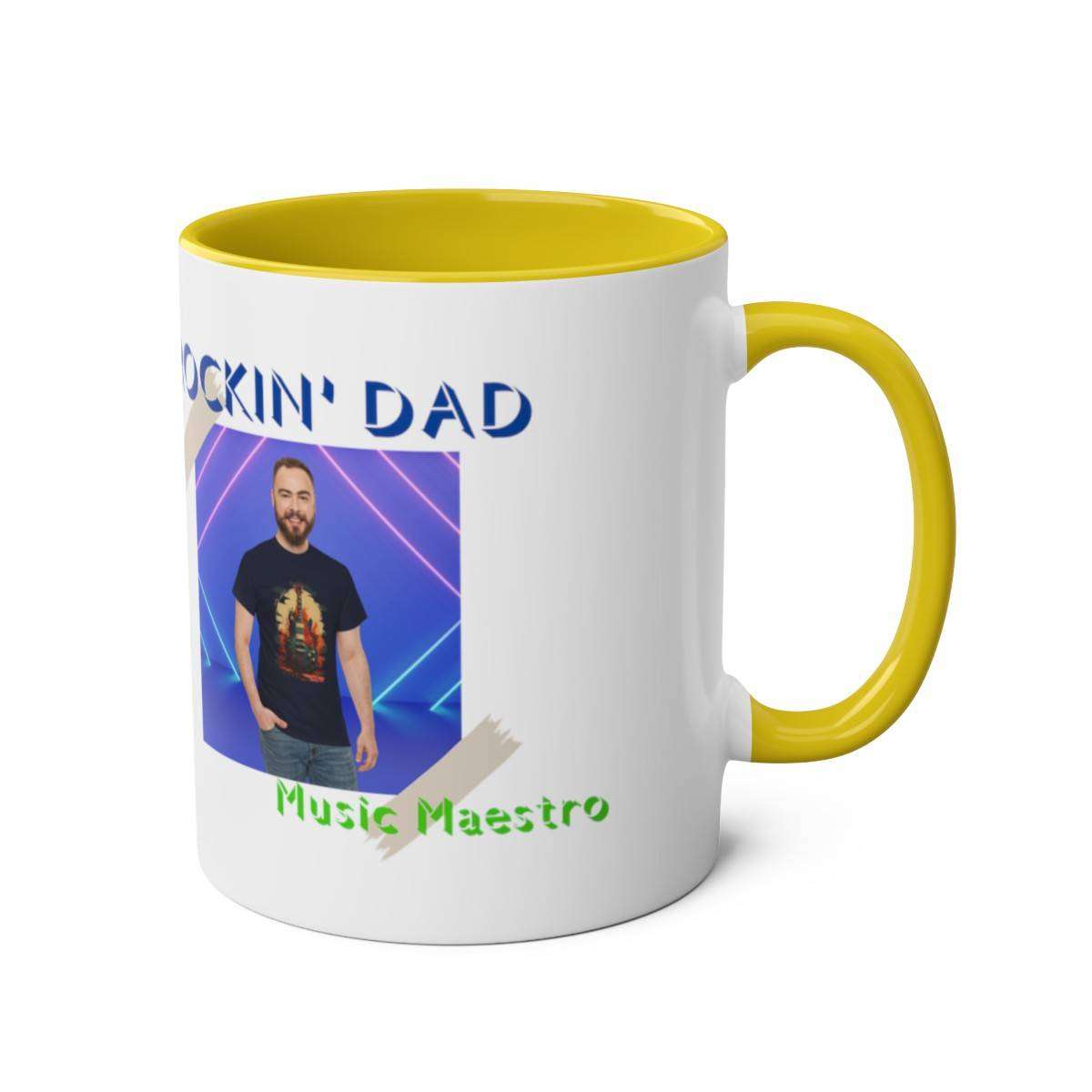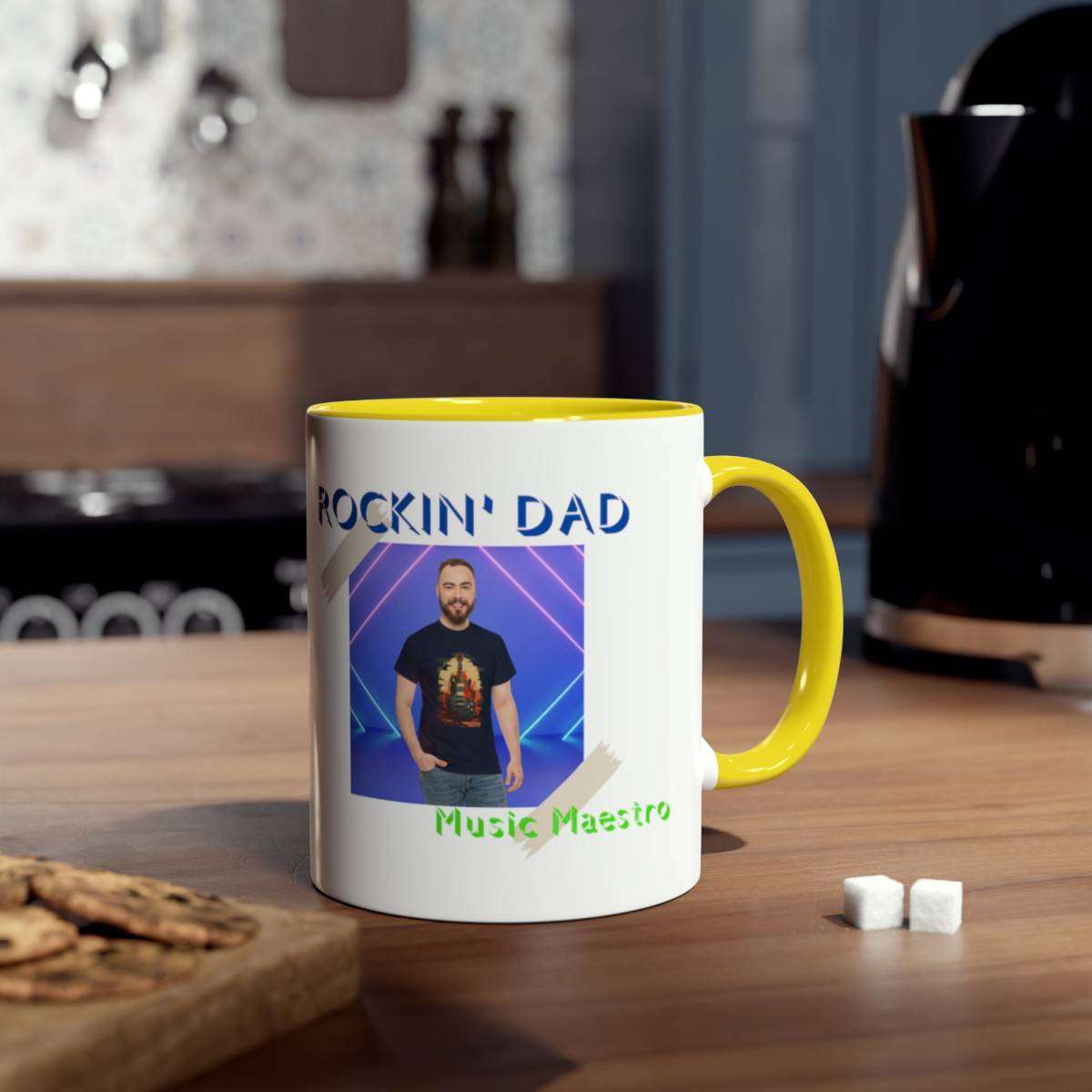 Introducing the Awesome Personalized Rockin’ Dad Mug 11oz, the perfect gift for the dad who rocks your world! This stylish and fun mug features a personal touch with your dad’s picture, making it a unique and cherished keepsake. The text “Rockin’ Dad” proudly sits above the photo, with “Music Maestro” elegantly displayed below, celebrating his love for music. On the other side of the mug, a cool design featuring a guitar with music notes adds to the rock ‘n’ roll theme.