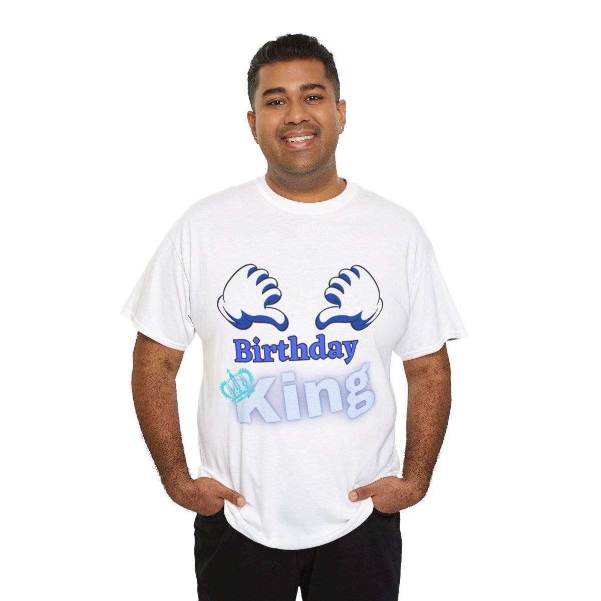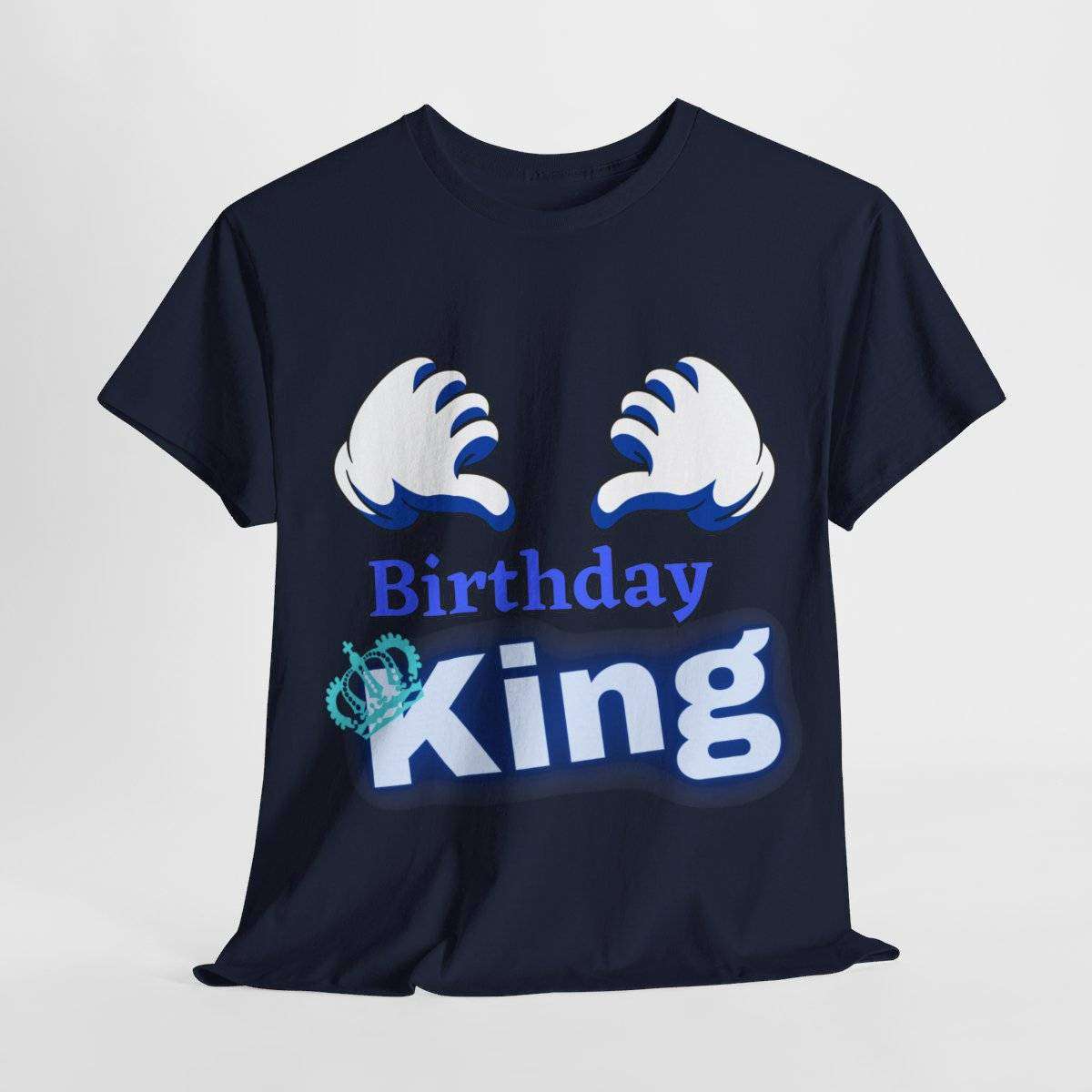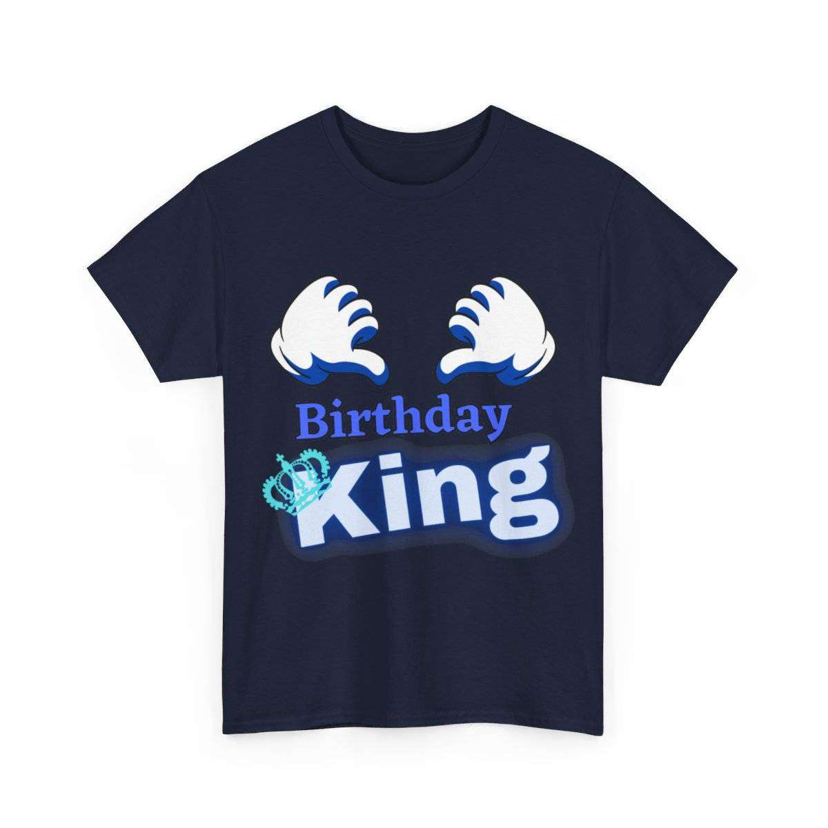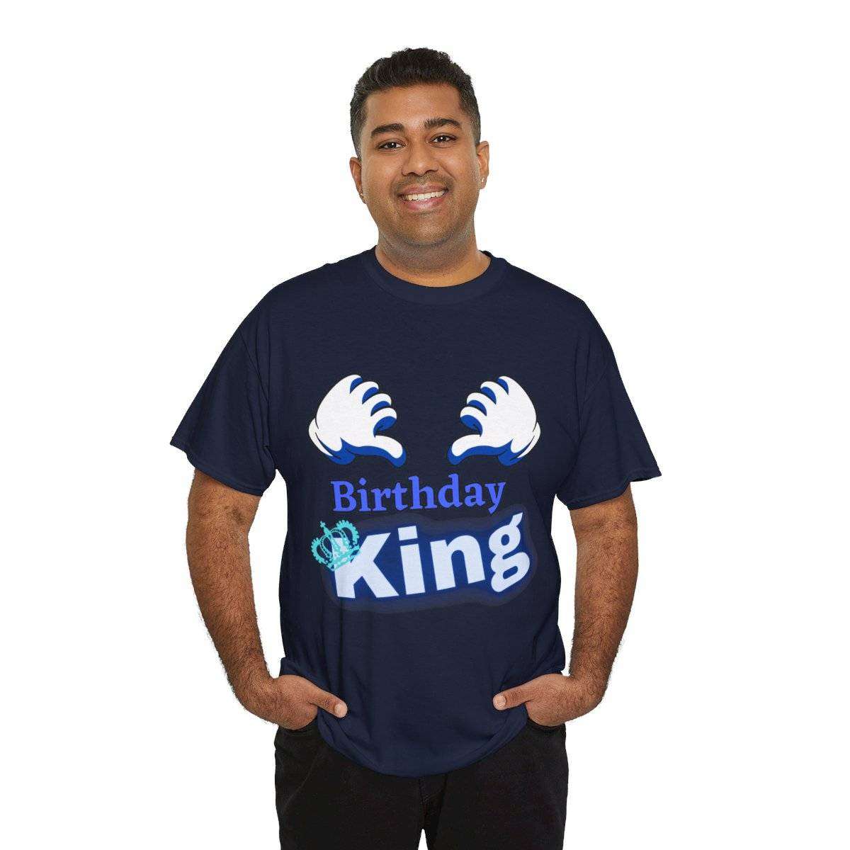 Crafted with care, this high-quality tshirt features the bold and eye-catching text “Birthday King” displayed prominently. But the real standout detail is the letter “K” in the word “King,” which is cleverly adorned with a crown, symbolizing the royal status of the birthday boy.