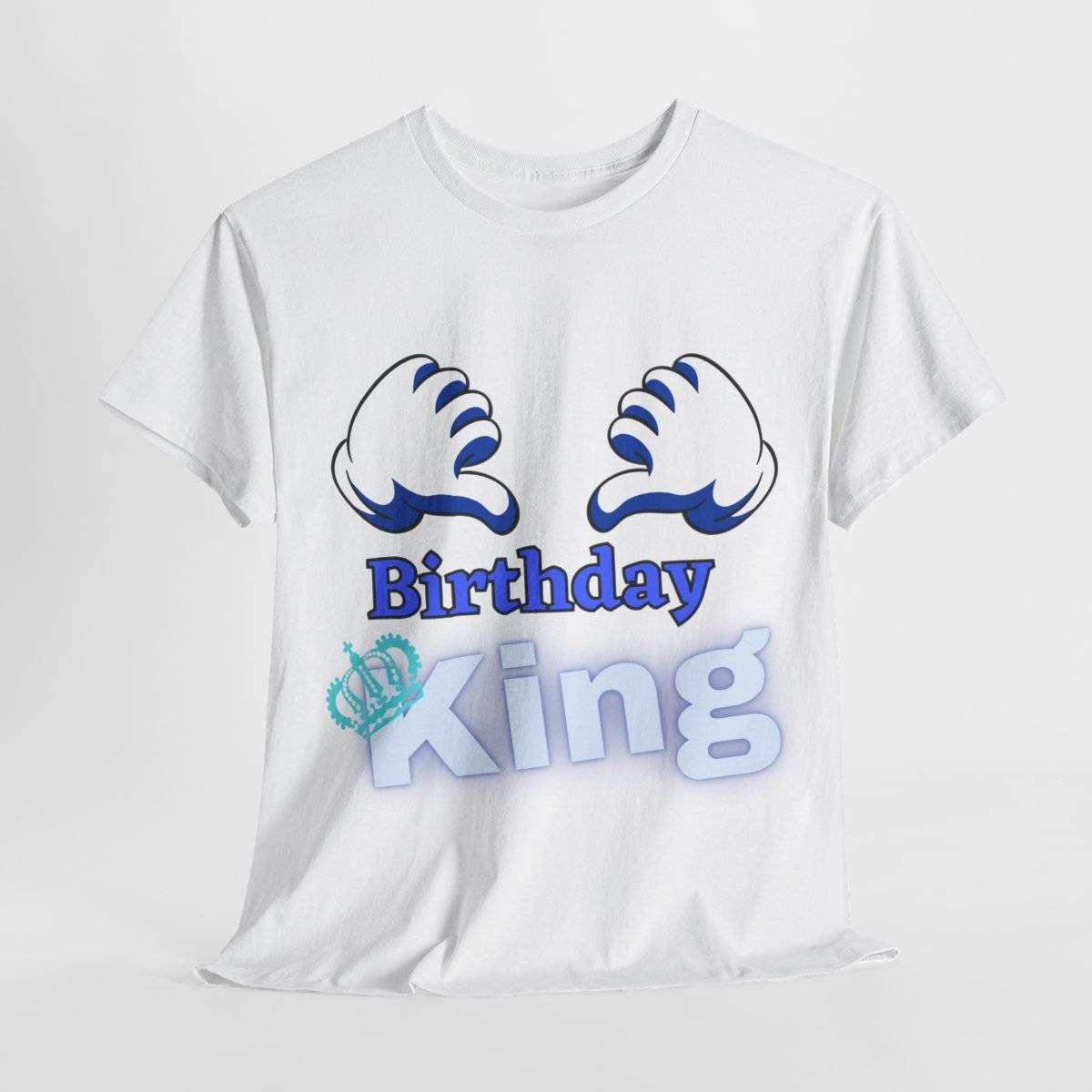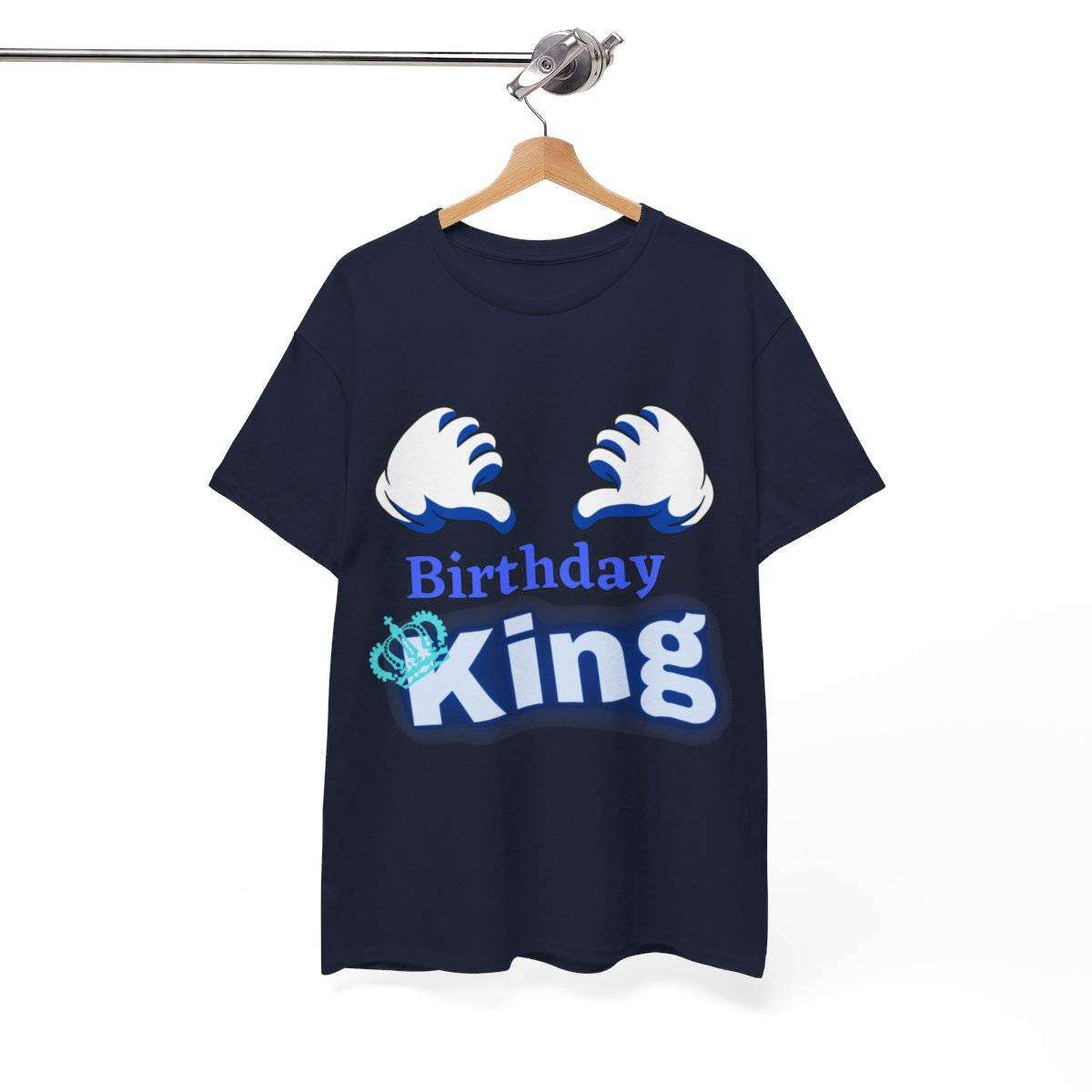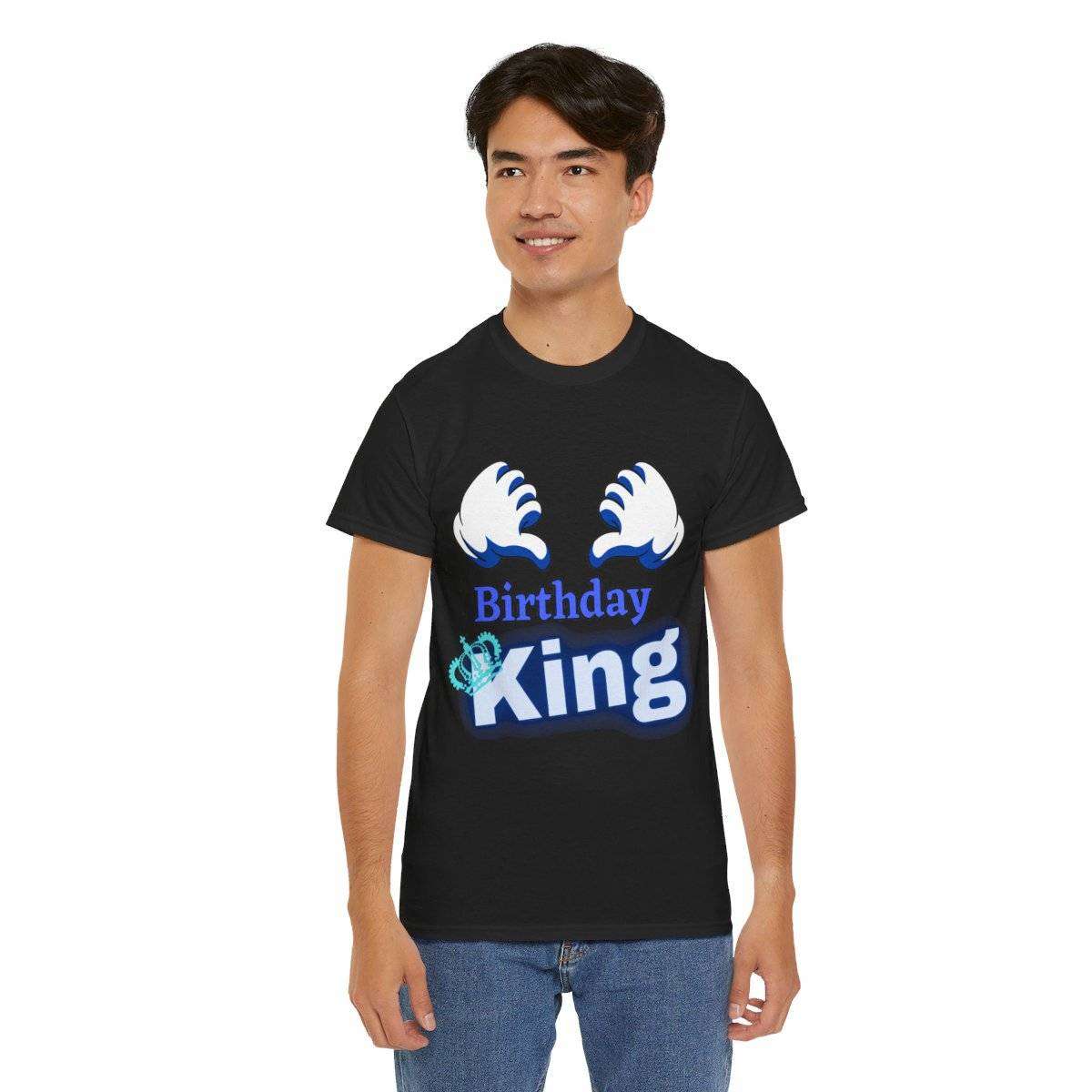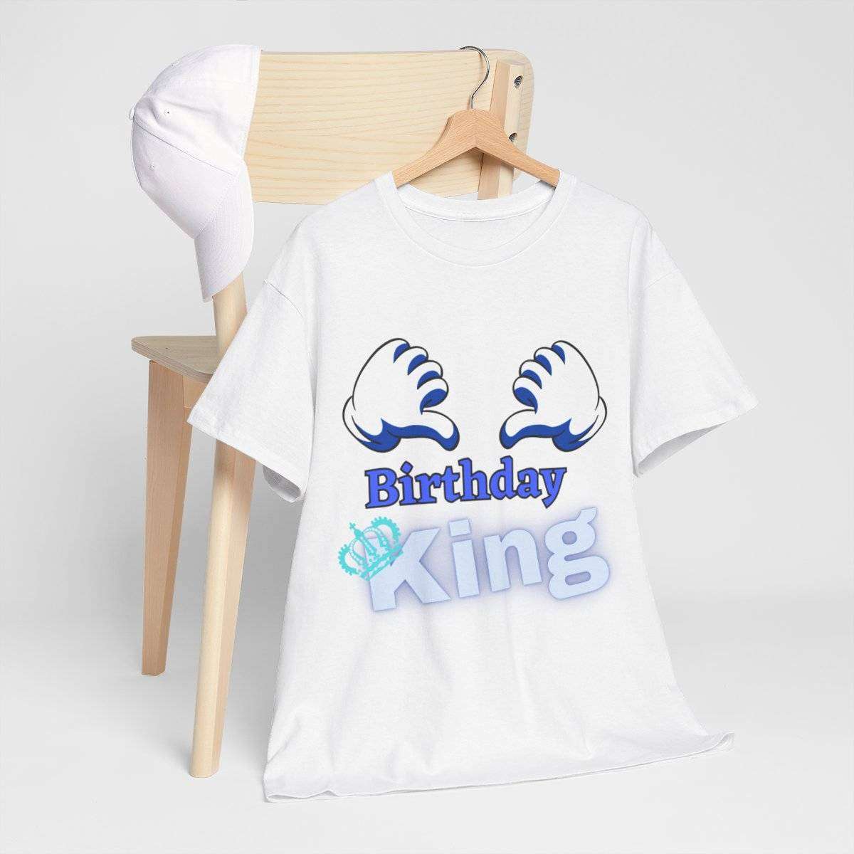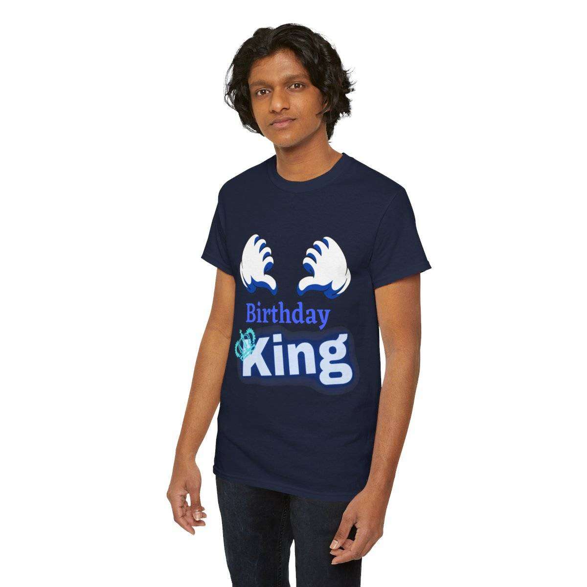 Crafted with care, this high-quality tshirt features the bold and eye-catching text “Birthday King” displayed prominently. But the real standout detail is the letter “K” in the word “King,” which is cleverly adorned with a crown, symbolizing the royal status of the birthday boy.