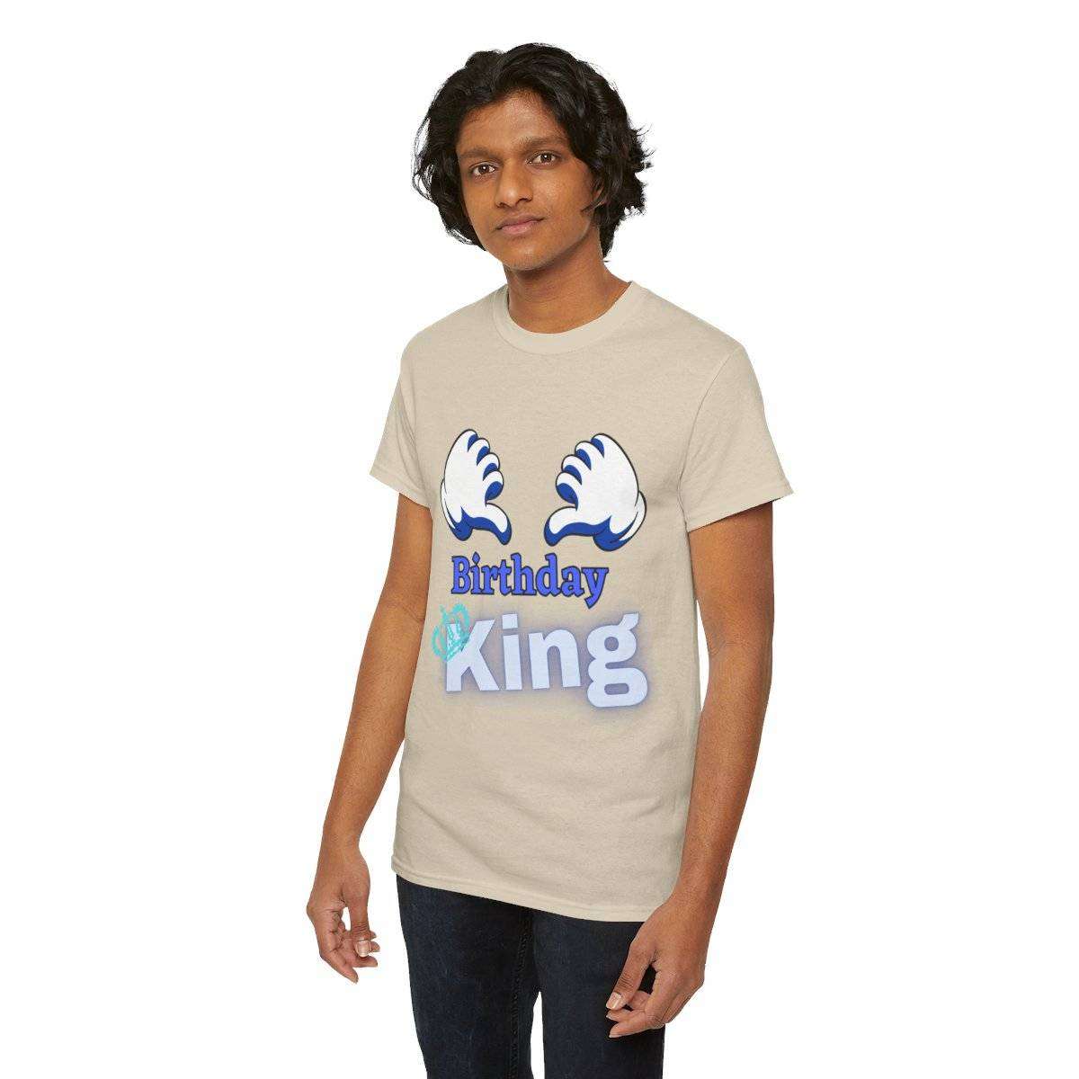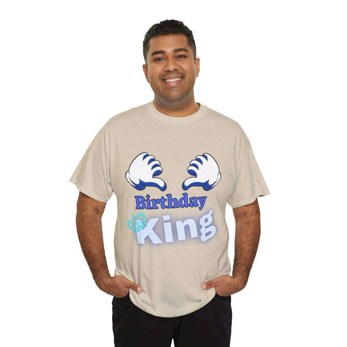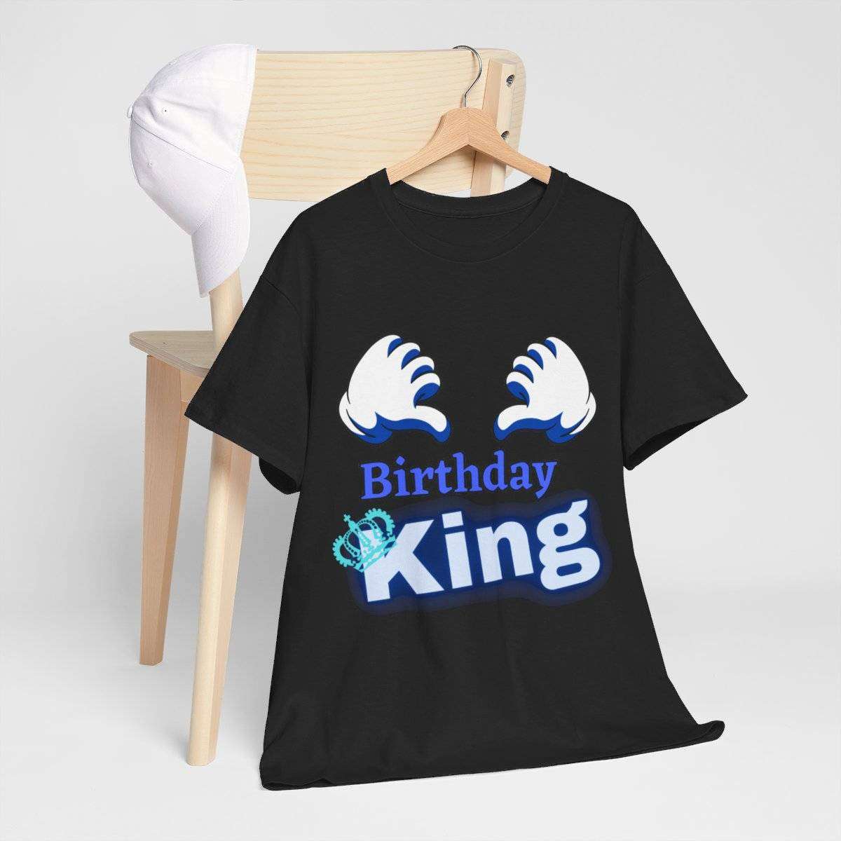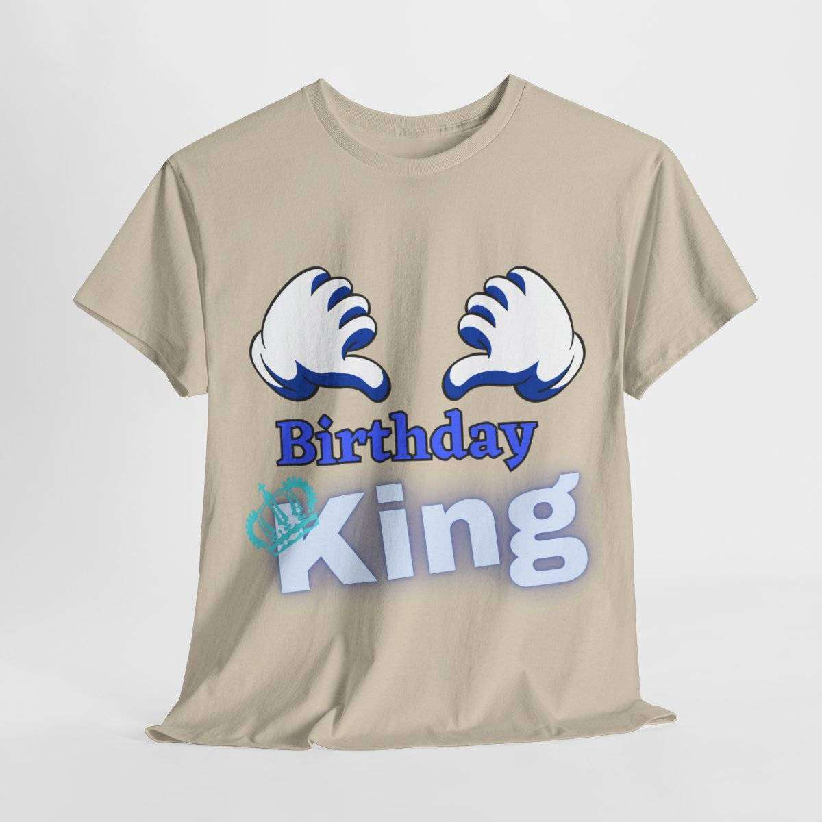 Crafted with care, this high-quality tshirt features the bold and eye-catching text “Birthday King” displayed prominently. But the real standout detail is the letter “K” in the word “King,” which is cleverly adorned with a crown, symbolizing the royal status of the birthday boy.