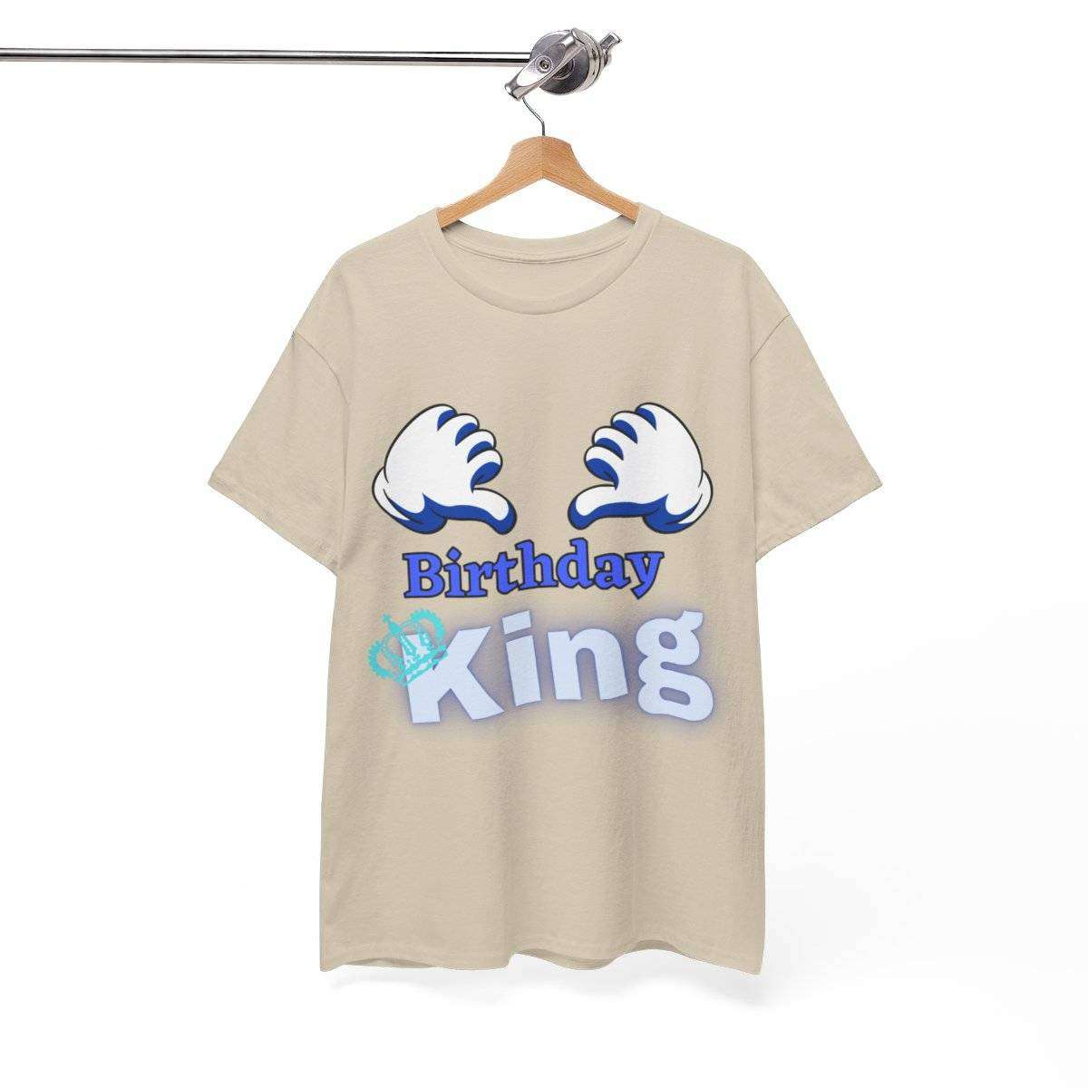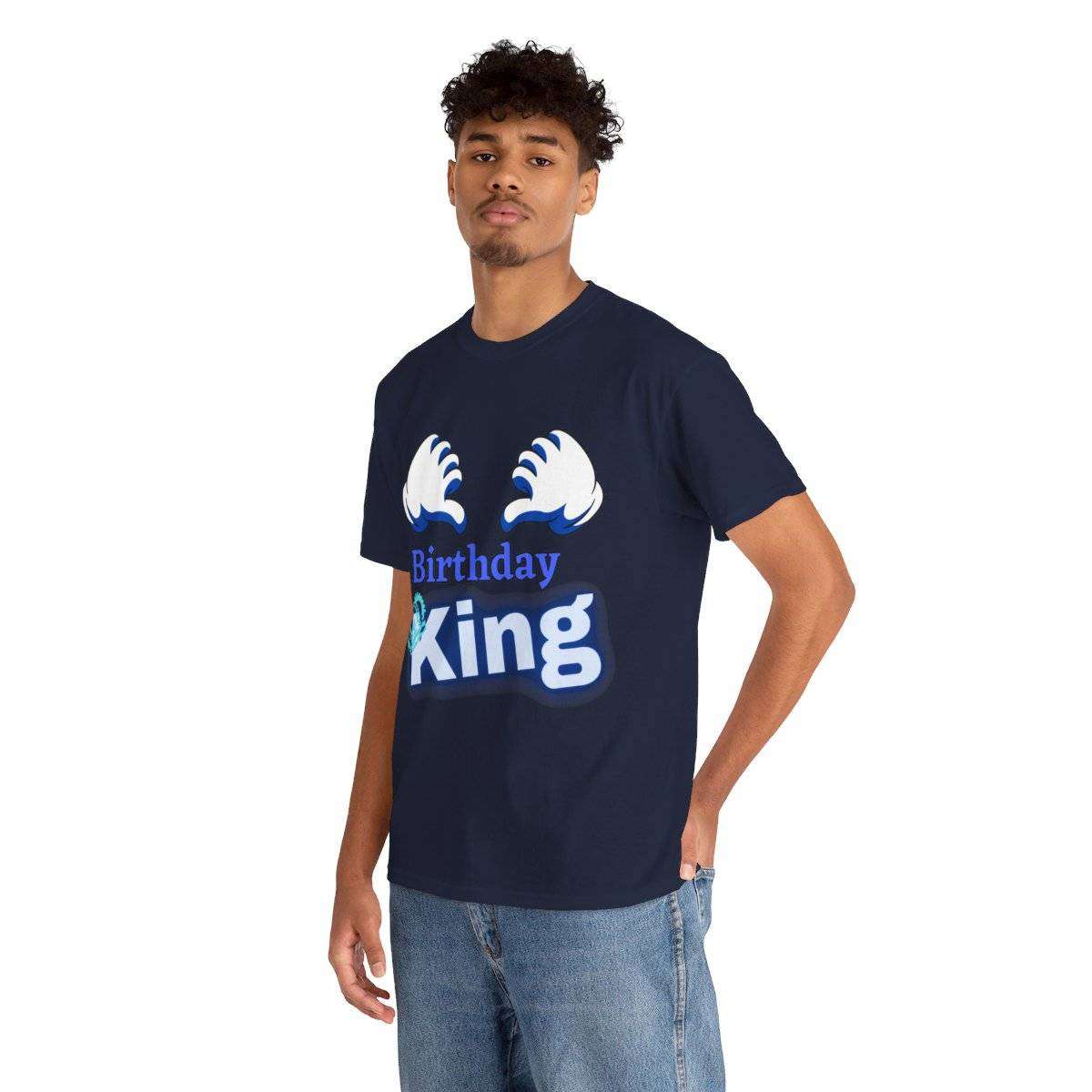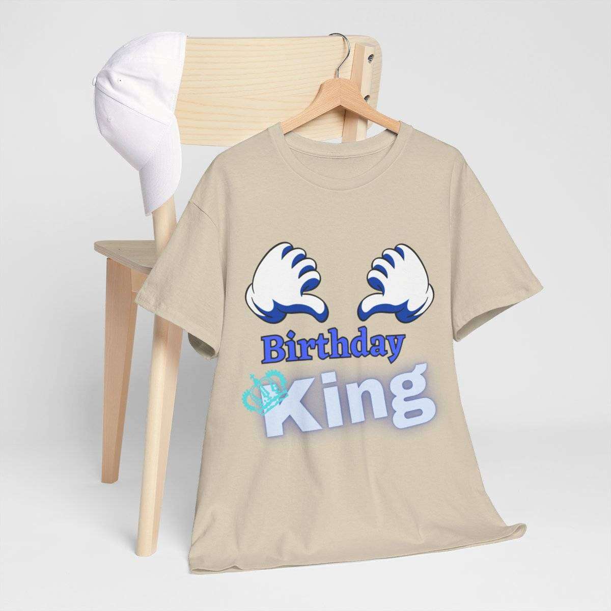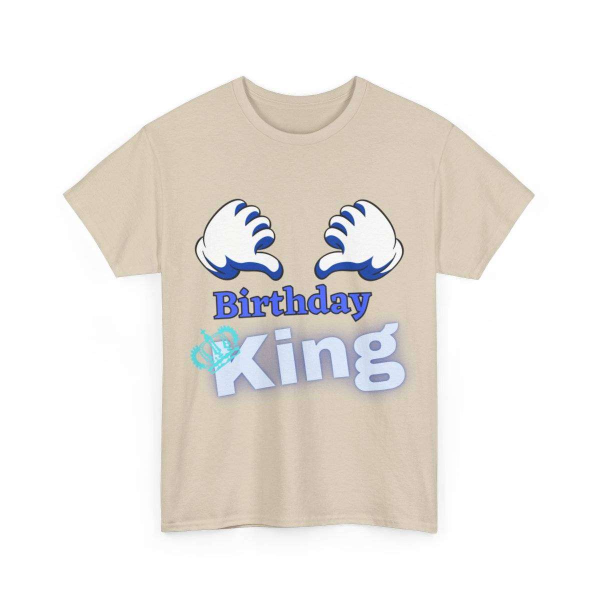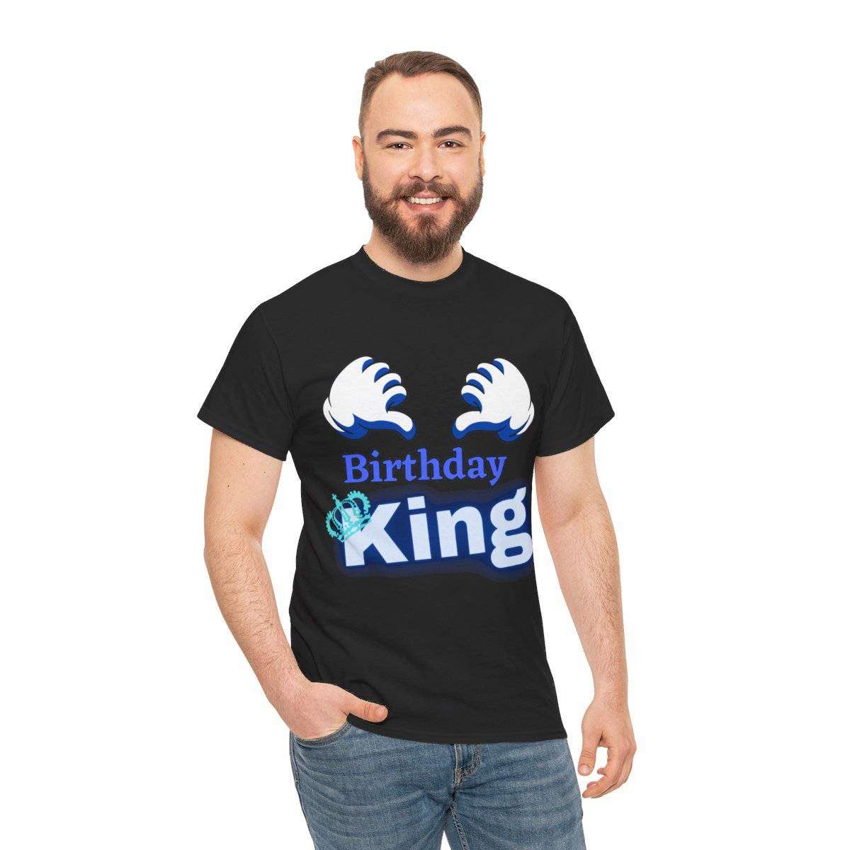 Crafted with care, this high-quality tshirt features the bold and eye-catching text “Birthday King” displayed prominently. But the real standout detail is the letter “K” in the word “King,” which is cleverly adorned with a crown, symbolizing the royal status of the birthday boy.