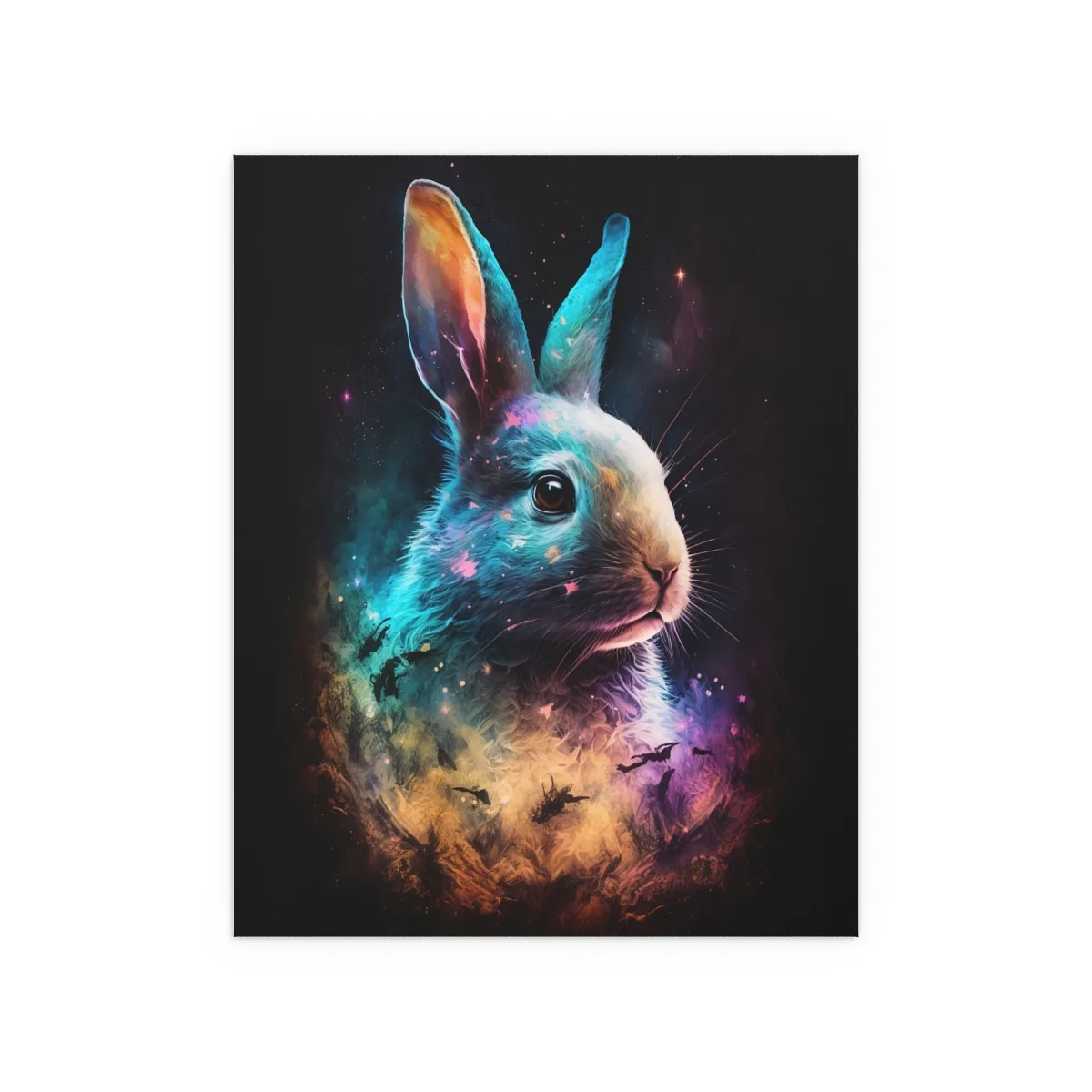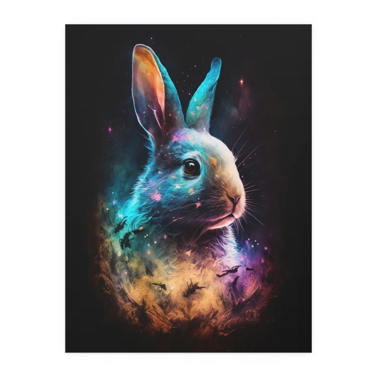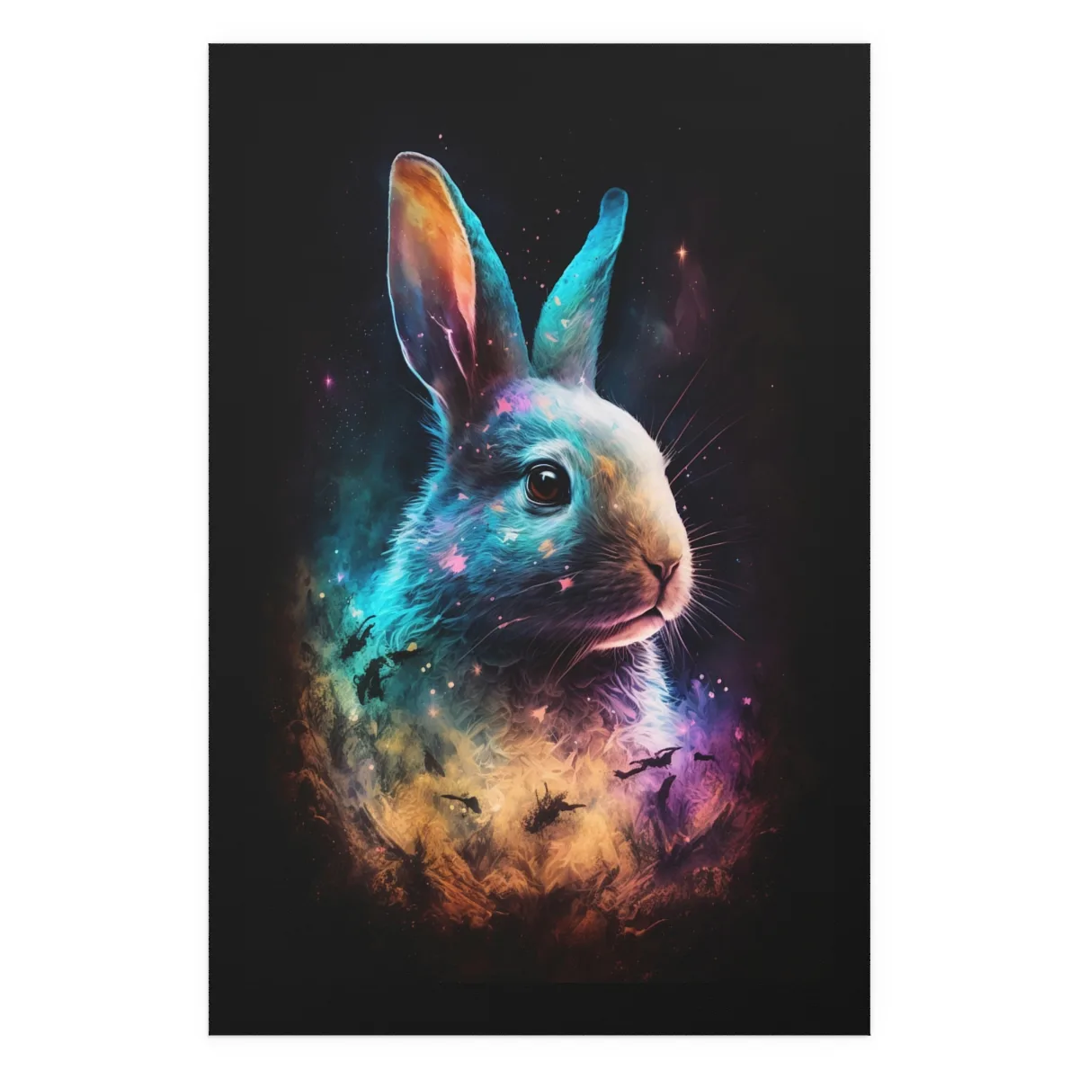 Explore the mysteries of the universe with our “Colorful Rabbit Space Poster”! This stunning poster features a cute and colorful rabbit floating through space, surrounded by a dazzling array of stars and planets.