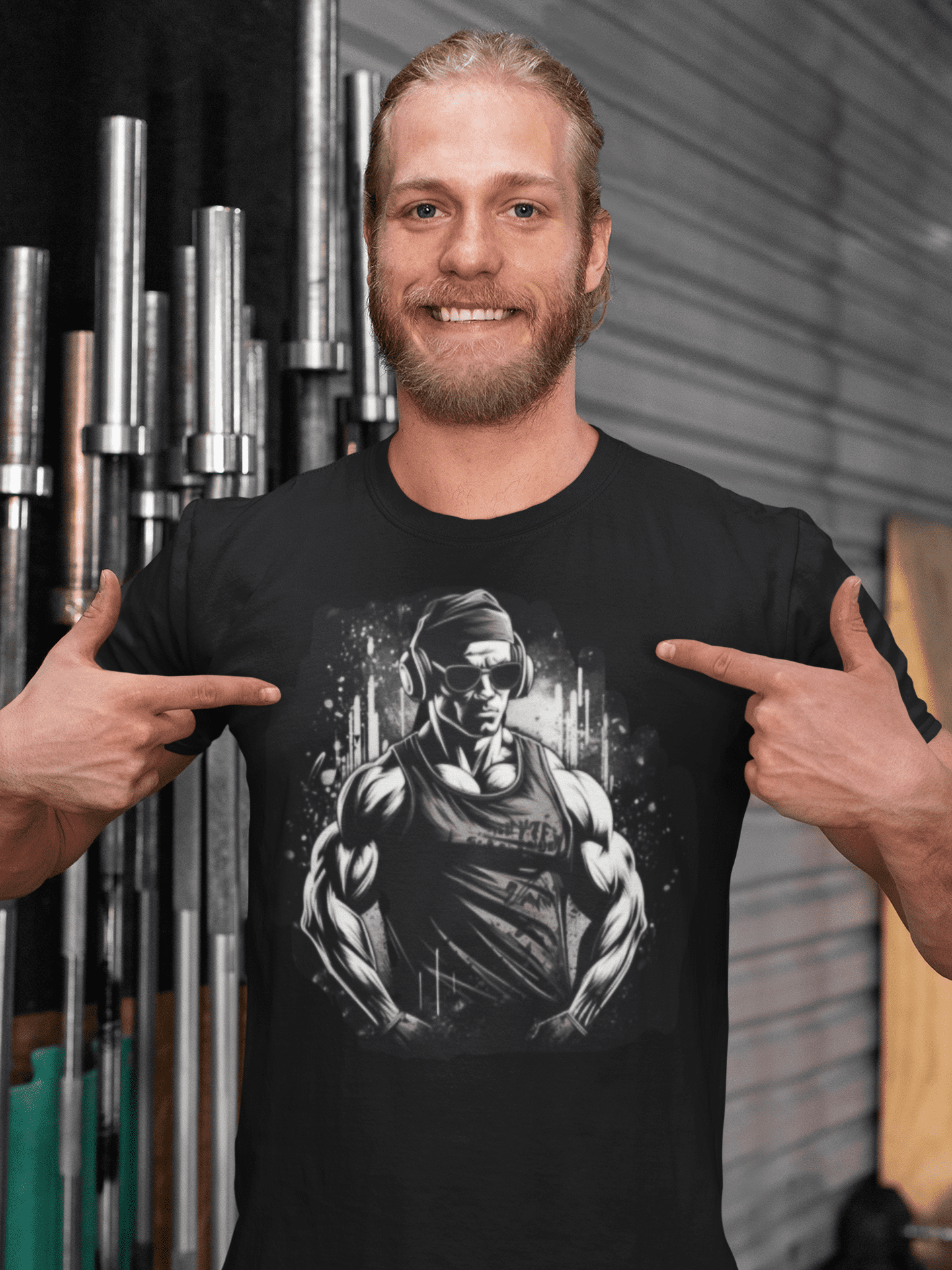 Featuring a bodybuilder with headphones and sunglasses, the design inspires you to stay focused and determined throughout your training sessions. It’s a reminder to stay in the zone and push yourself to the max.