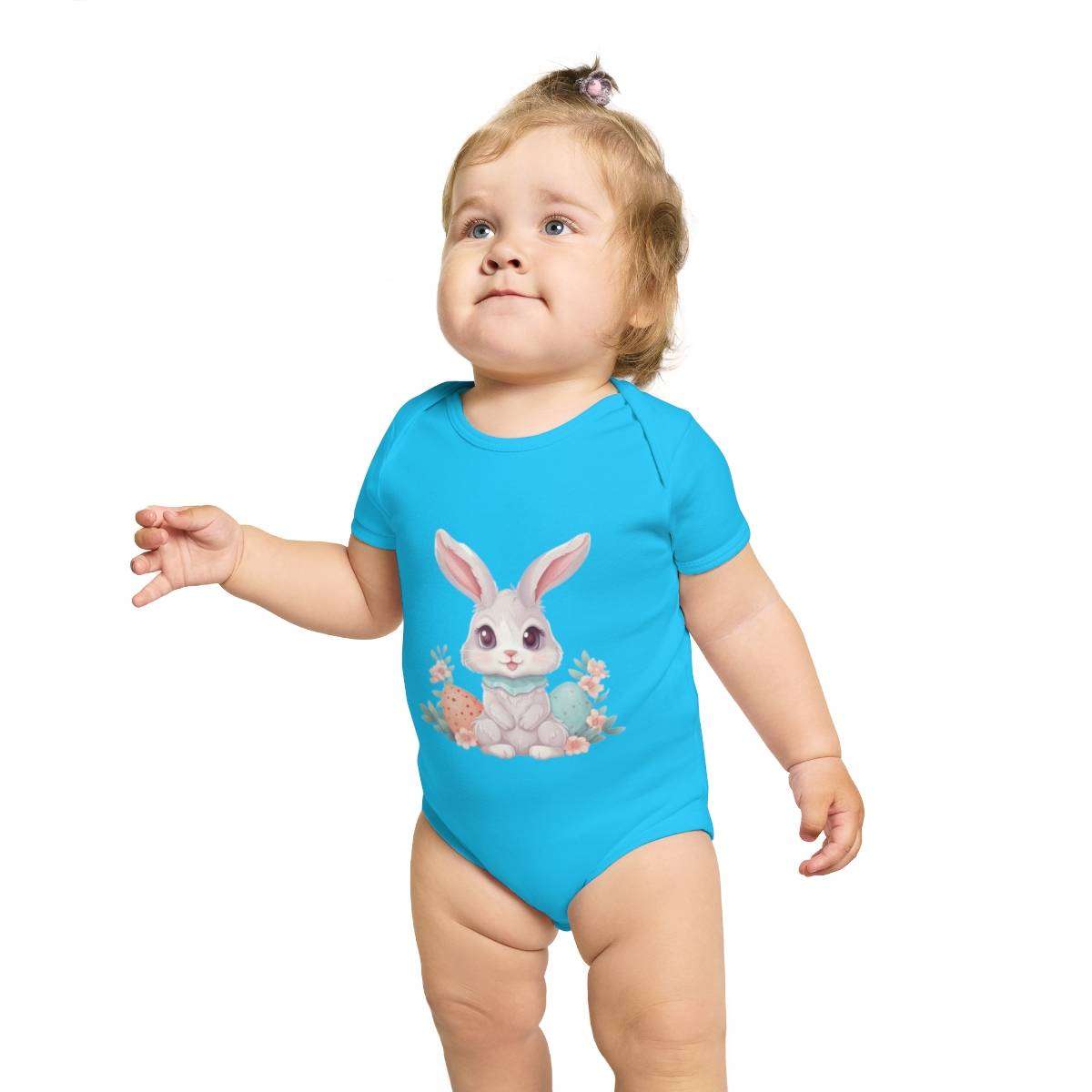 The “Cute Bunny Baby Bodysuit” features an enchanting design with a cute bunny print that adds a touch of sweetness to your baby’s wardrobe. The adorable bunny is sure to bring smiles and joy to everyone around.