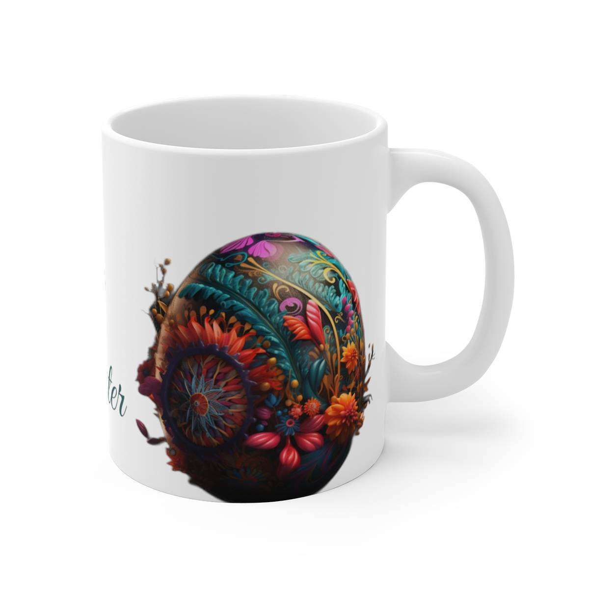 Crafted with care, our 11oz Easter mug features a vibrant and playful design, showcasing beautifully decorated Easter eggs. The colorful patterns and intricate details will bring a smile to your face and create a cheerful atmosphere as you sip your coffee or tea.