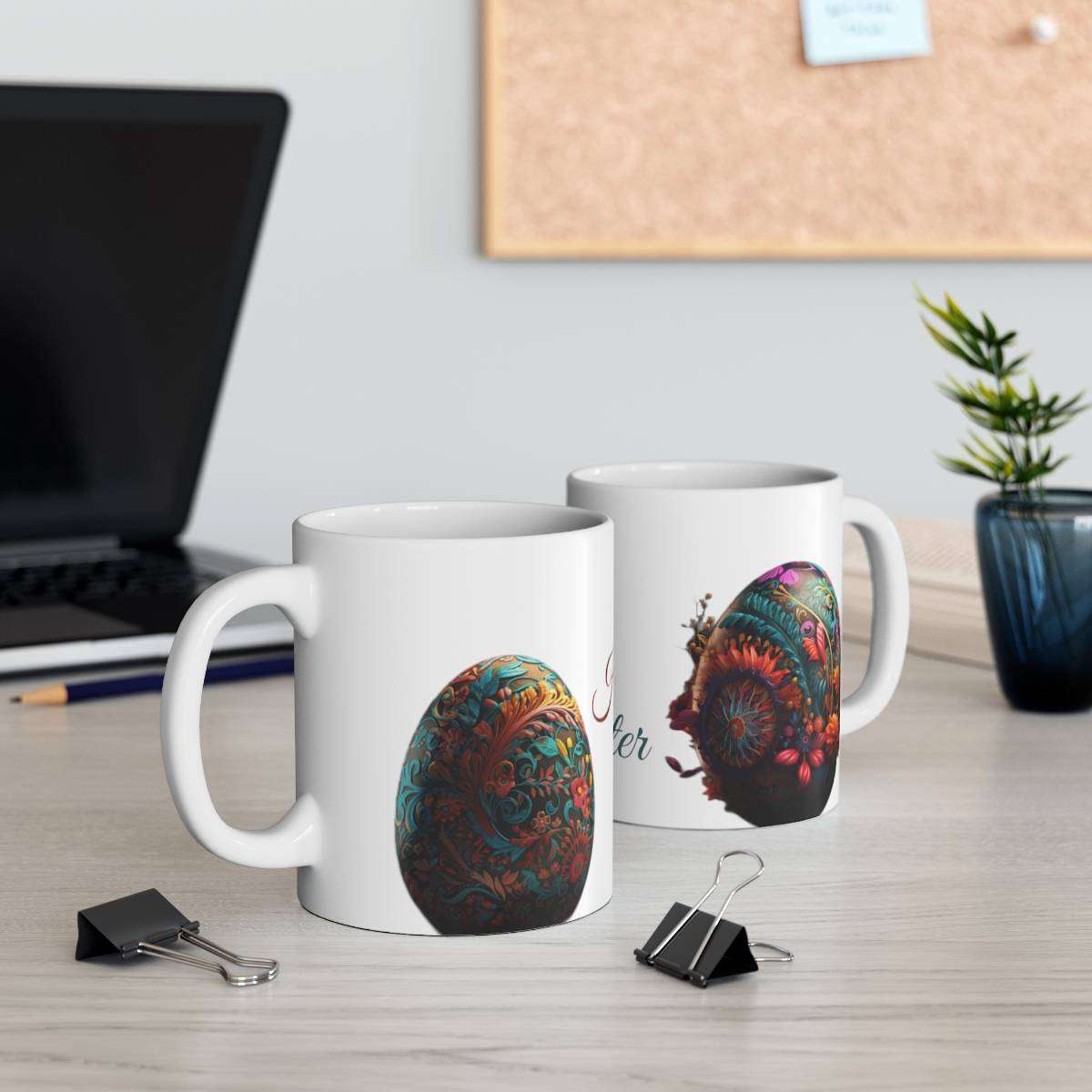 Start your Easter mornings with a touch of whimsy and delight with our Easter Egg Coffee Mug. This charming mug is the perfect companion for your favorite hot beverages, adding a festive and joyful flair to your morning routine.