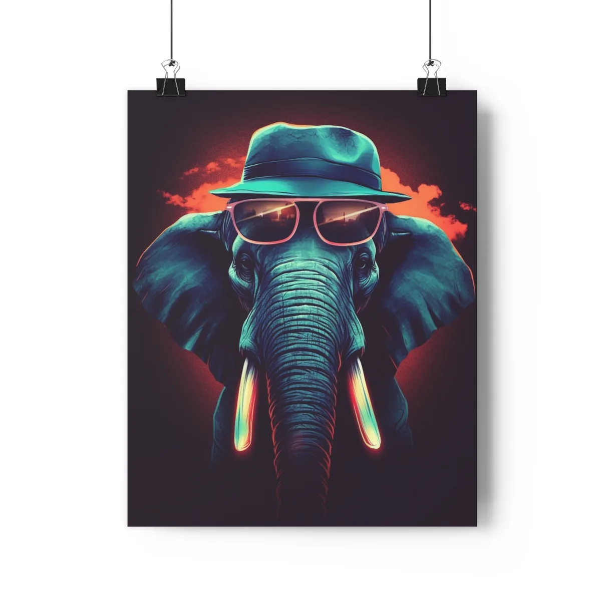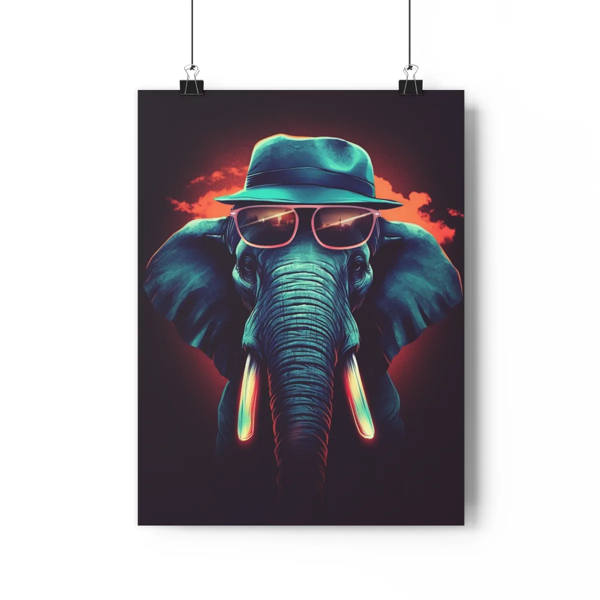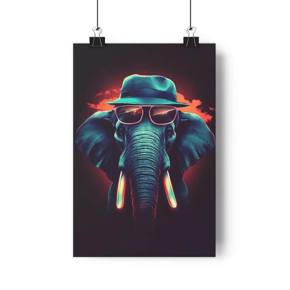 Discover our “Elephant Premium Poster,” a charming piece of AI-generated art that adds a playful touch to your decor. The poster features a stylish elephant wearing a hat and sunglasses, radiating sophistication and whimsy.