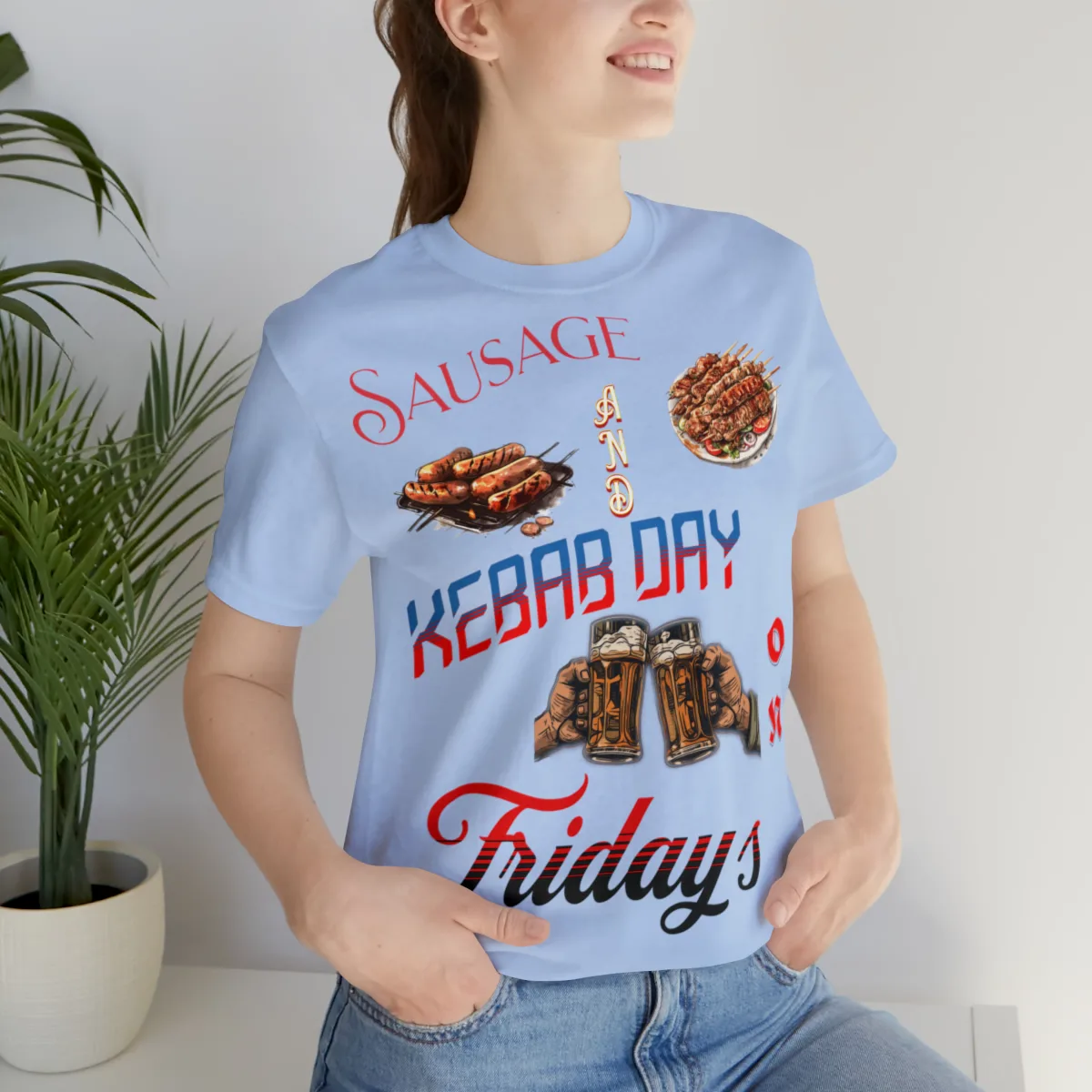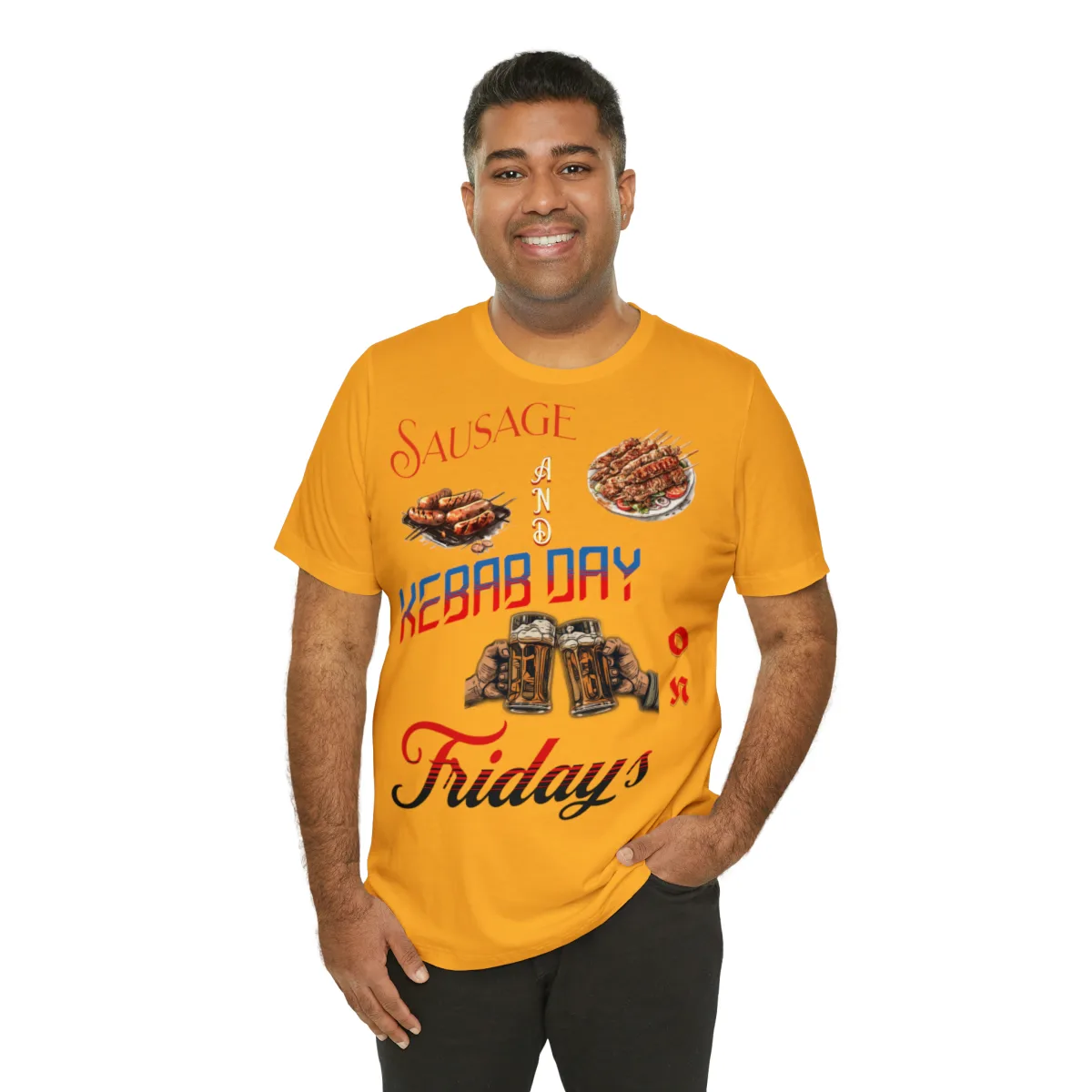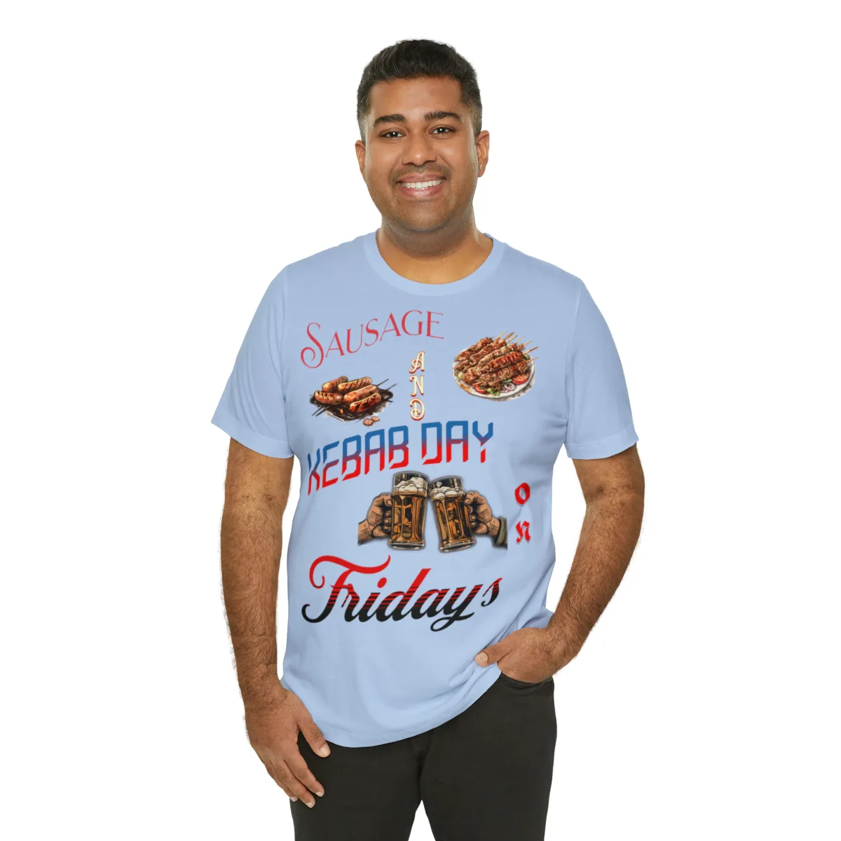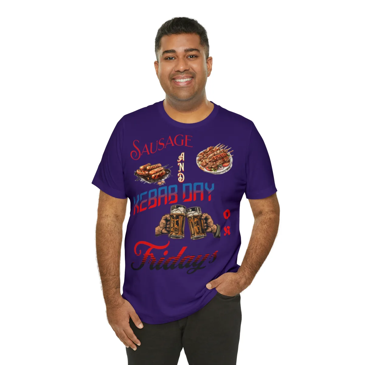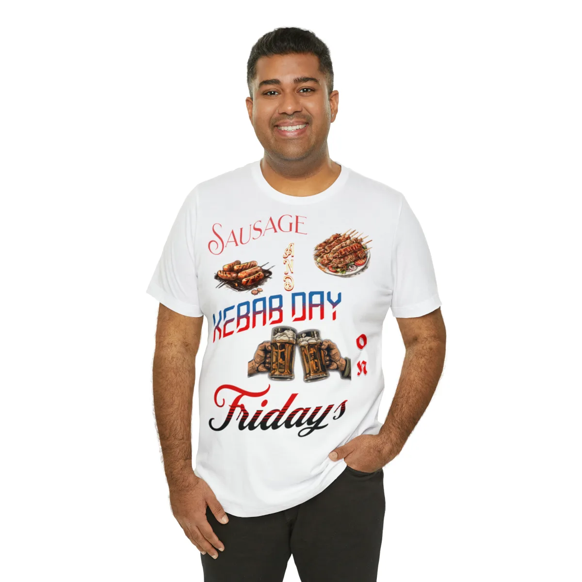 The versatile design of our Sausage and Kebab T-Shirt makes it easy to style. Pair it with jeans, shorts, or skirts for a casual and quirky look. Whether you’re attending a backyard barbecue, exploring food markets, or simply expressing your love for delicious cuisines, this t-shirt is the perfect choice.