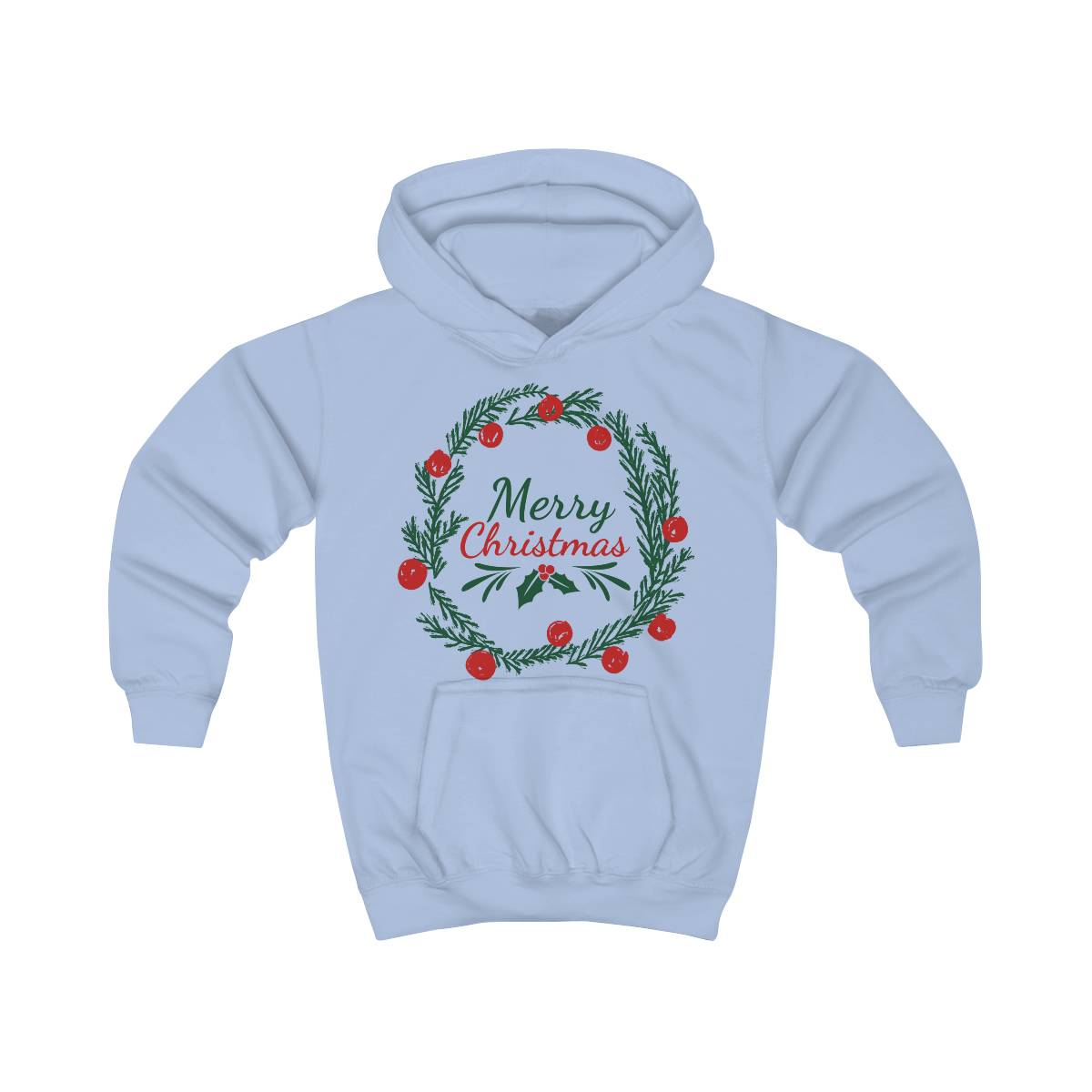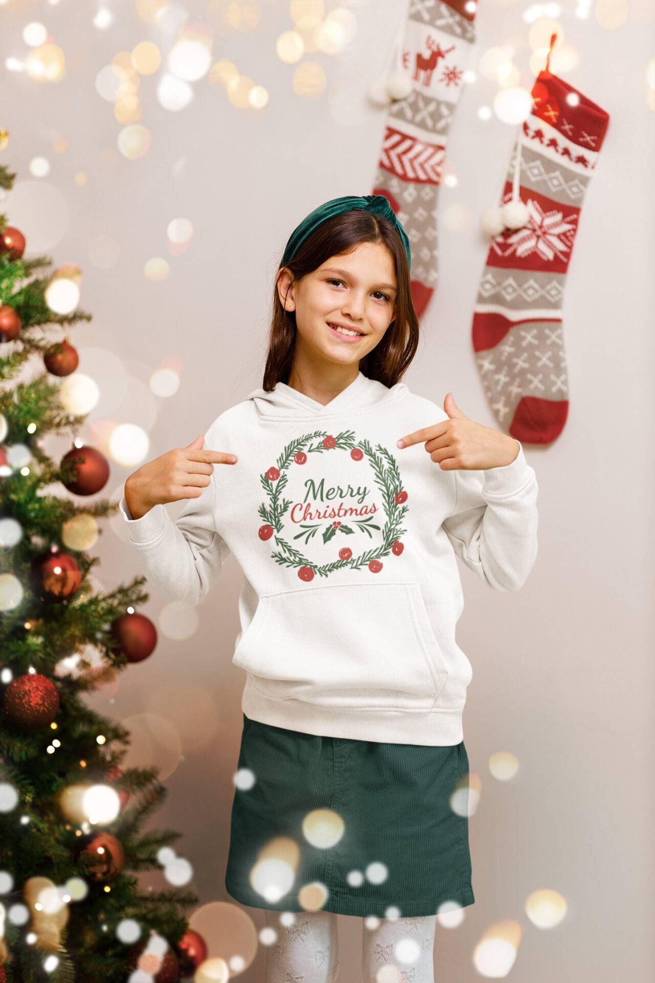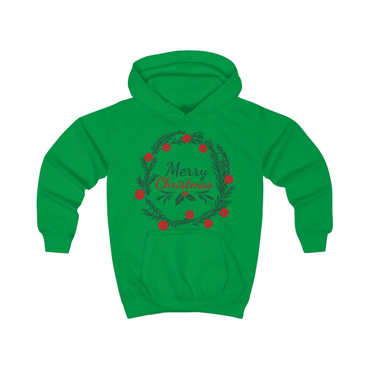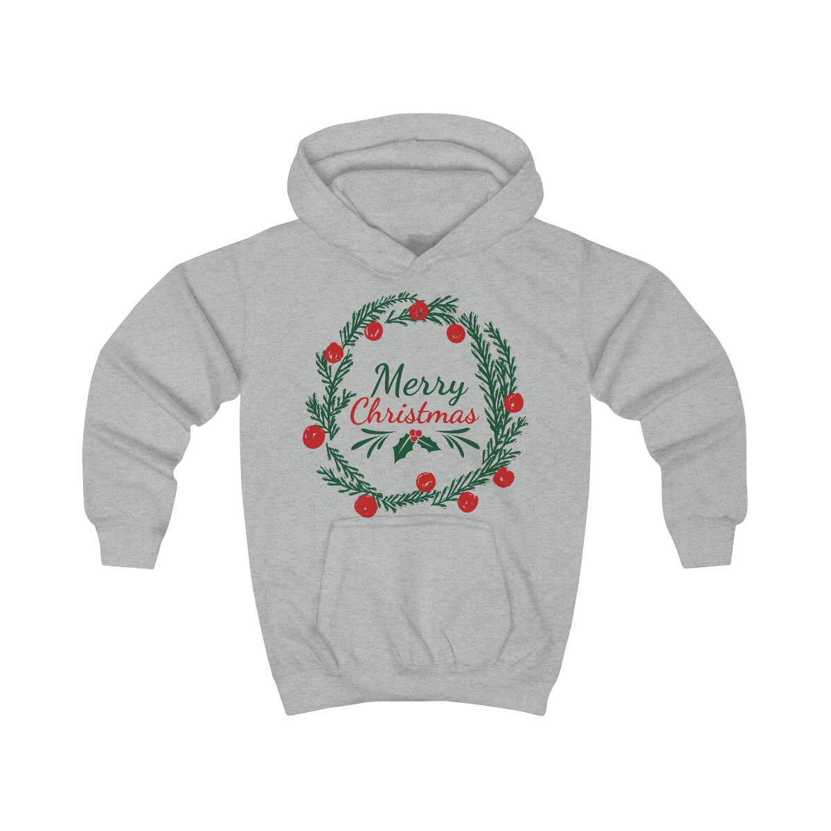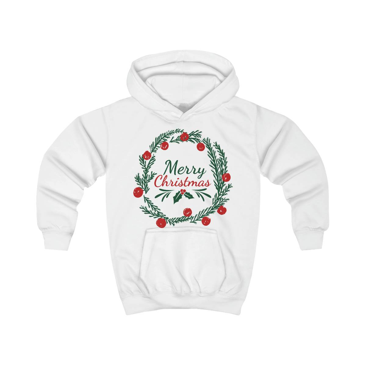 Introducing our Kids Merry Christmas Hoodie! This festive hoodie features the joyful text ‘Merry Christmas’ accompanied by a delightful image of mistletoe on the front.