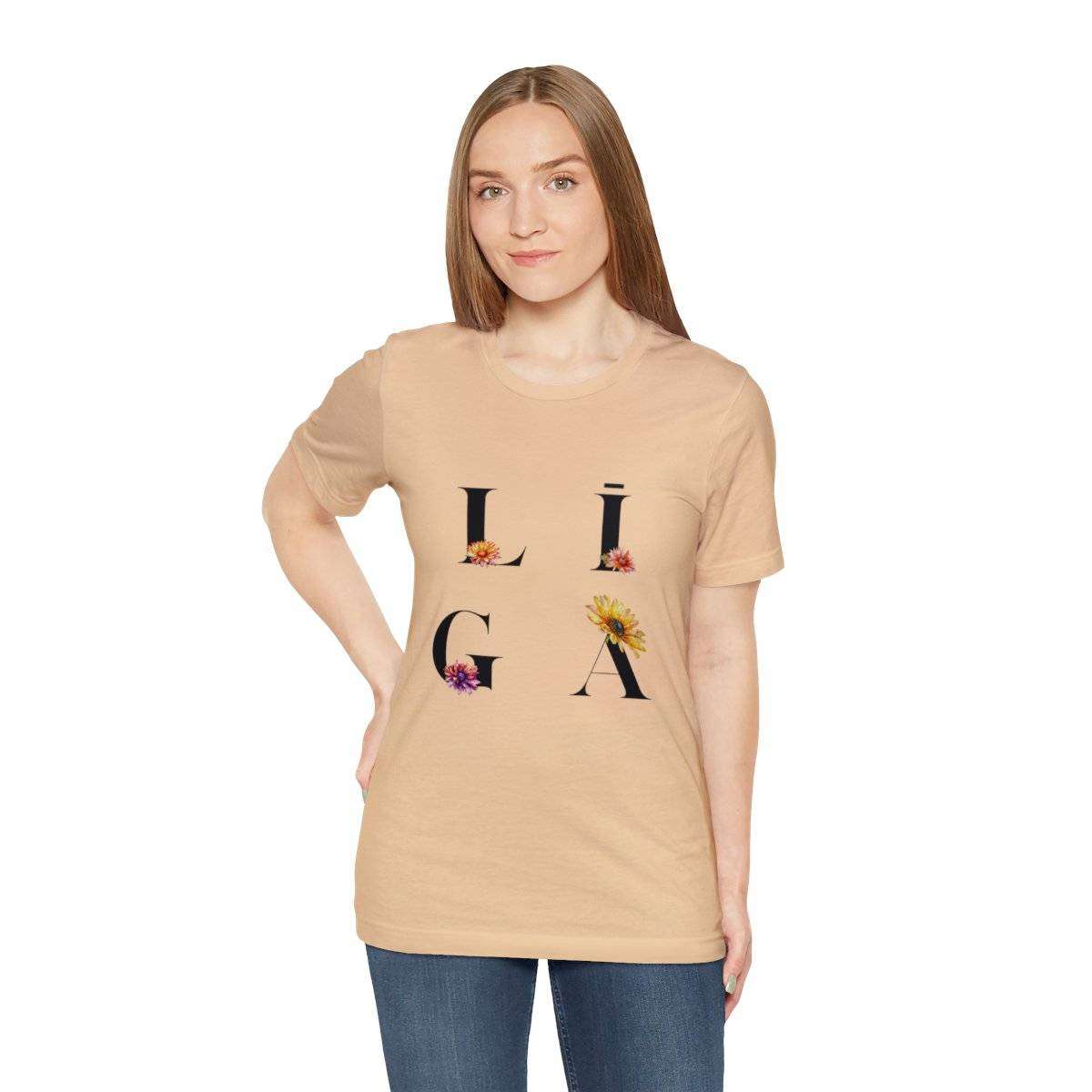 Celebrate the essence of Līga with our Women’s Tee, a harmonious blend of tradition and contemporary style, beautifully presented in each blooming letter.