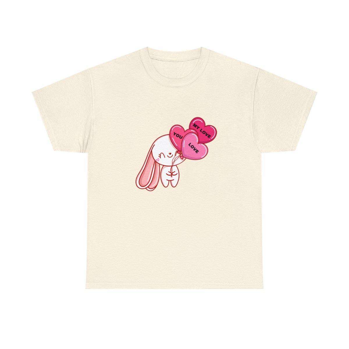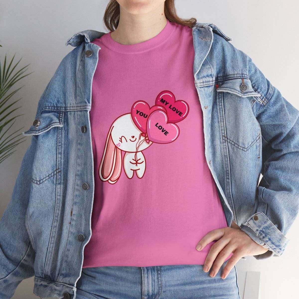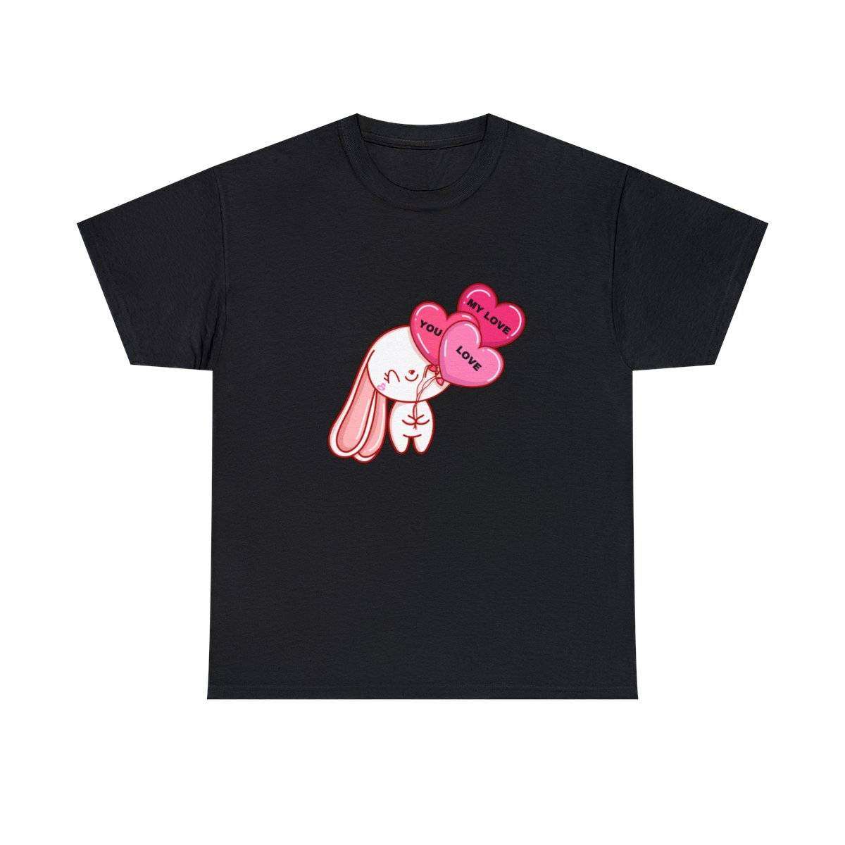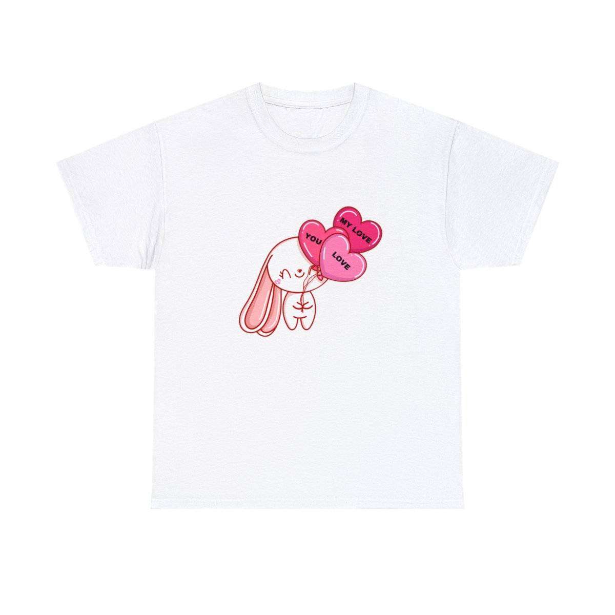 Crafted with a blend of charm and affection, this shirt embodies the sweetness of a loving sentiment. The delightful image of the rabbit with balloons, coupled with the heartfelt message, radiates warmth and tenderness, making it a perfect expression of adoration.