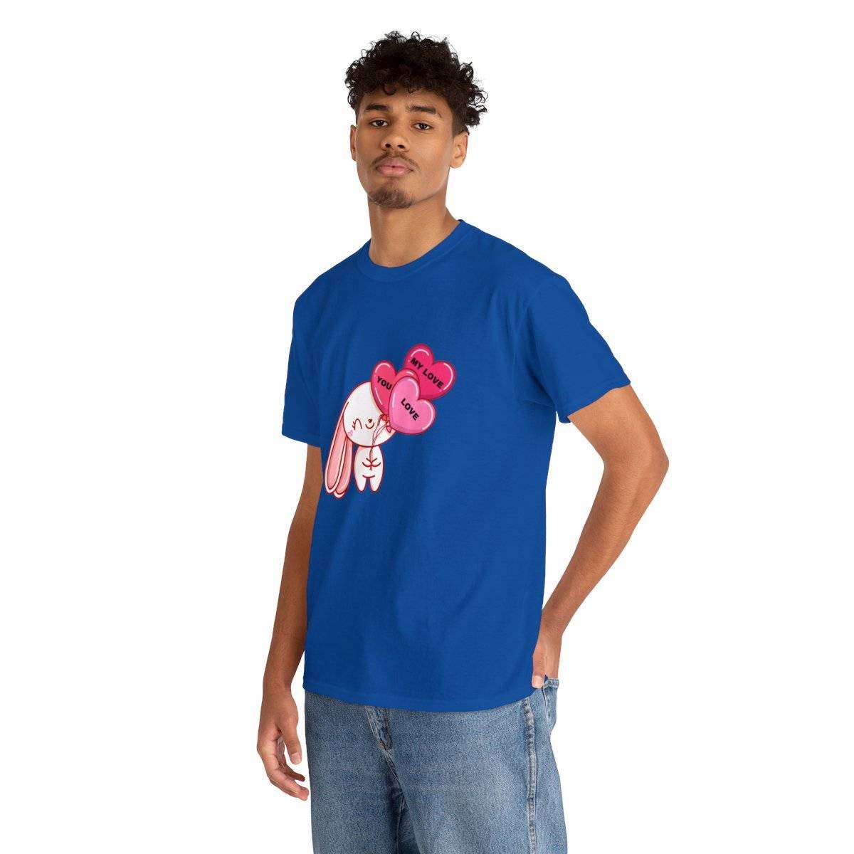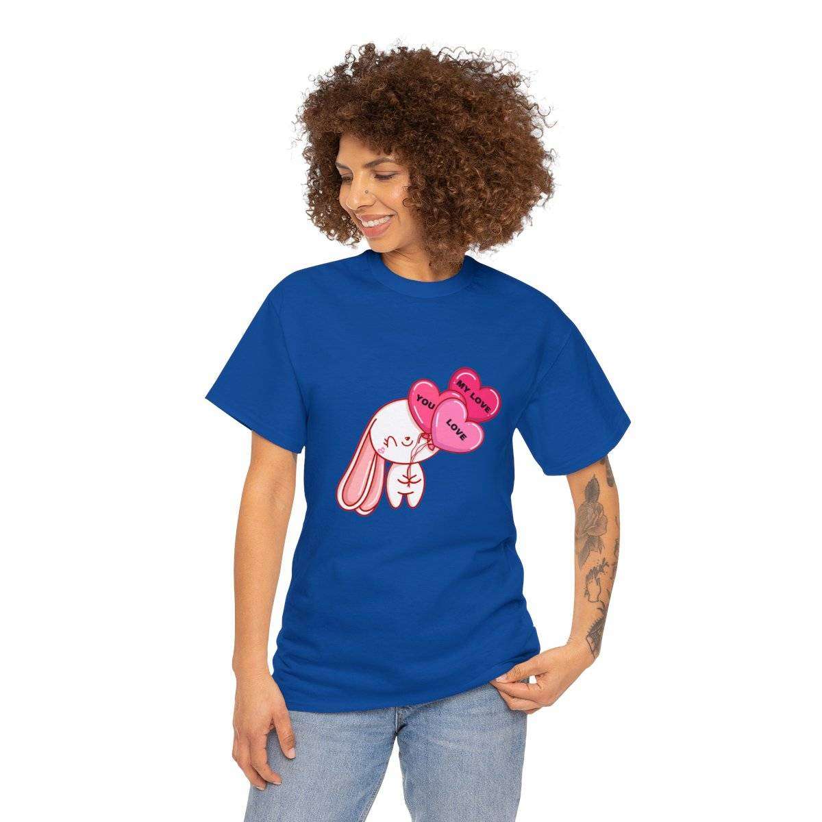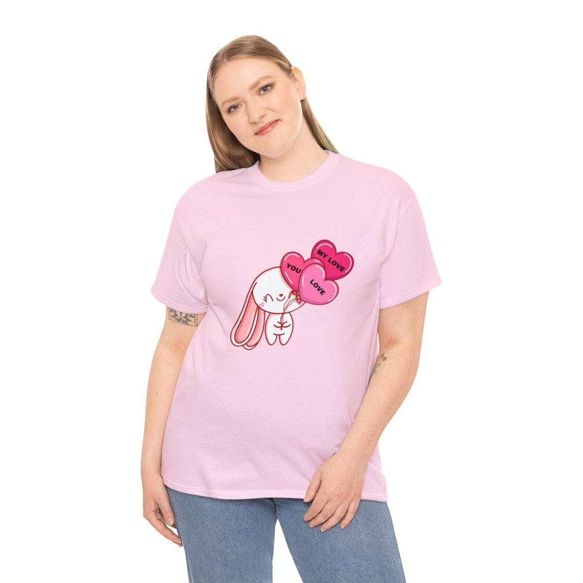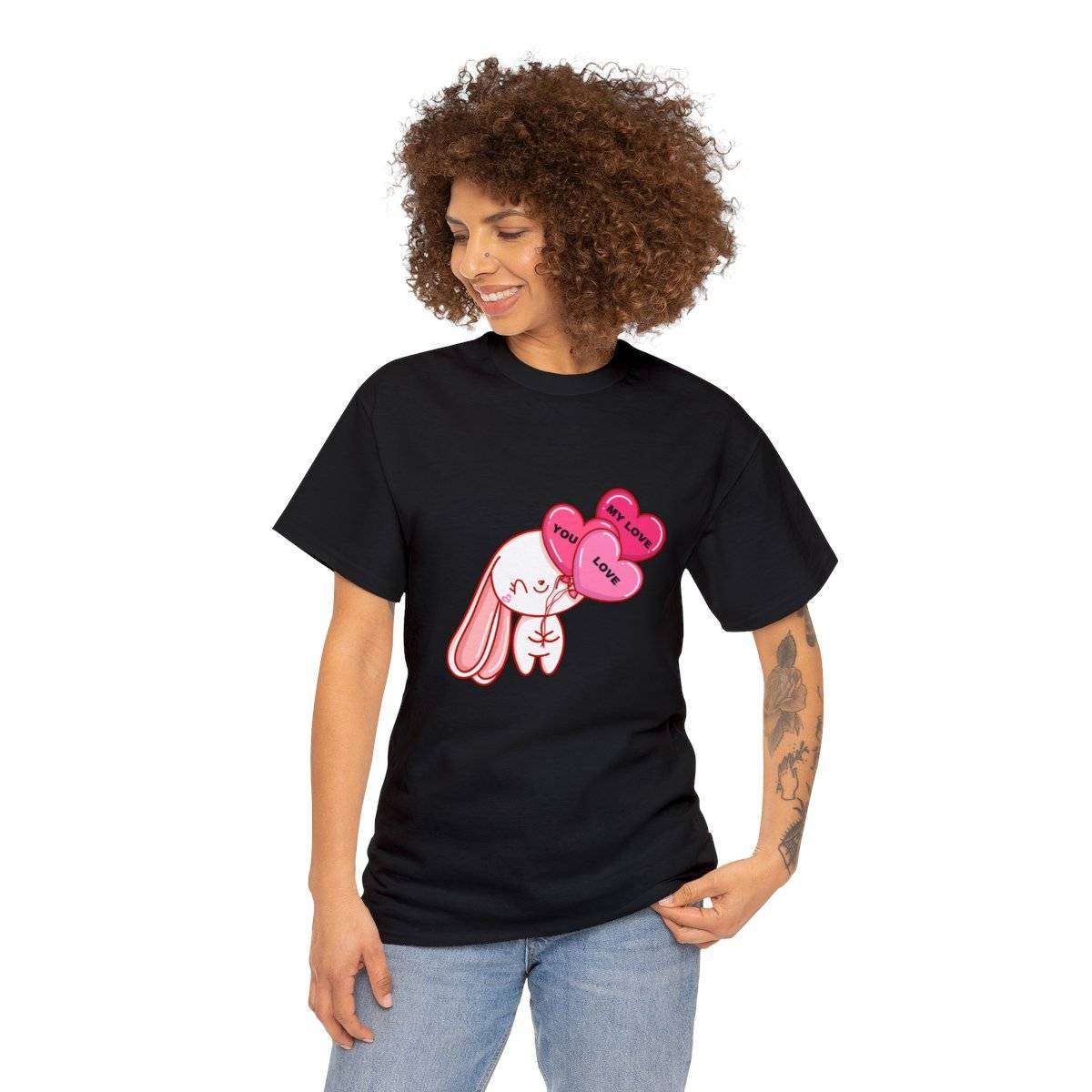 Crafted with a blend of charm and affection, this shirt embodies the sweetness of a loving sentiment. The delightful image of the rabbit with balloons, coupled with the heartfelt message, radiates warmth and tenderness, making it a perfect expression of adoration.