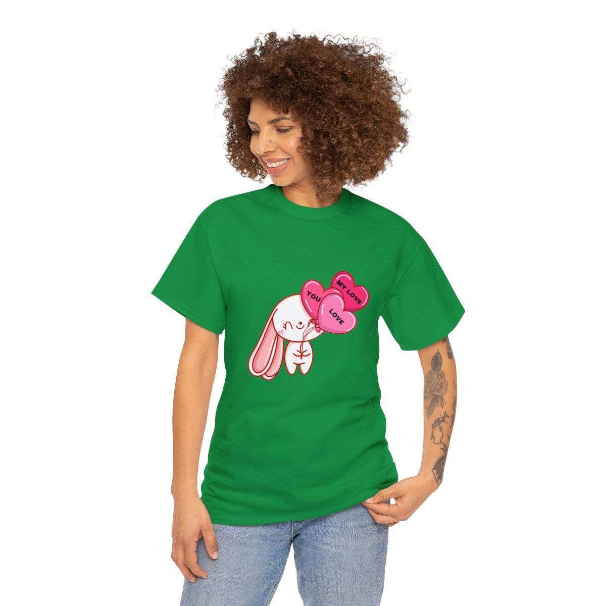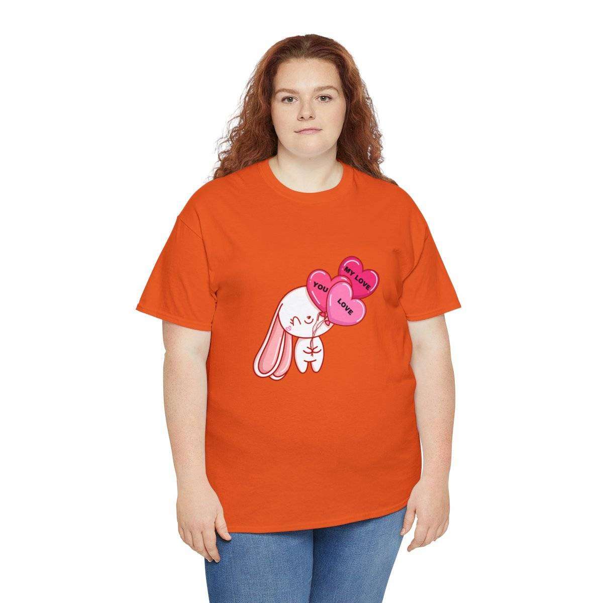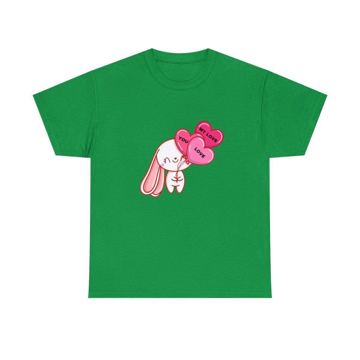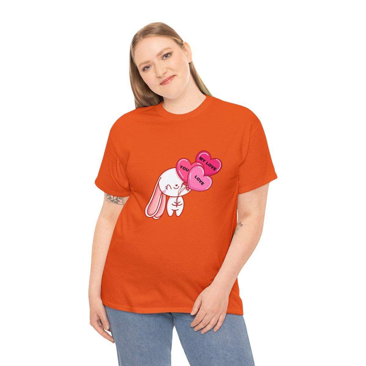 Crafted with a blend of charm and affection, this shirt embodies the sweetness of a loving sentiment. The delightful image of the rabbit with balloons, coupled with the heartfelt message, radiates warmth and tenderness, making it a perfect expression of adoration.