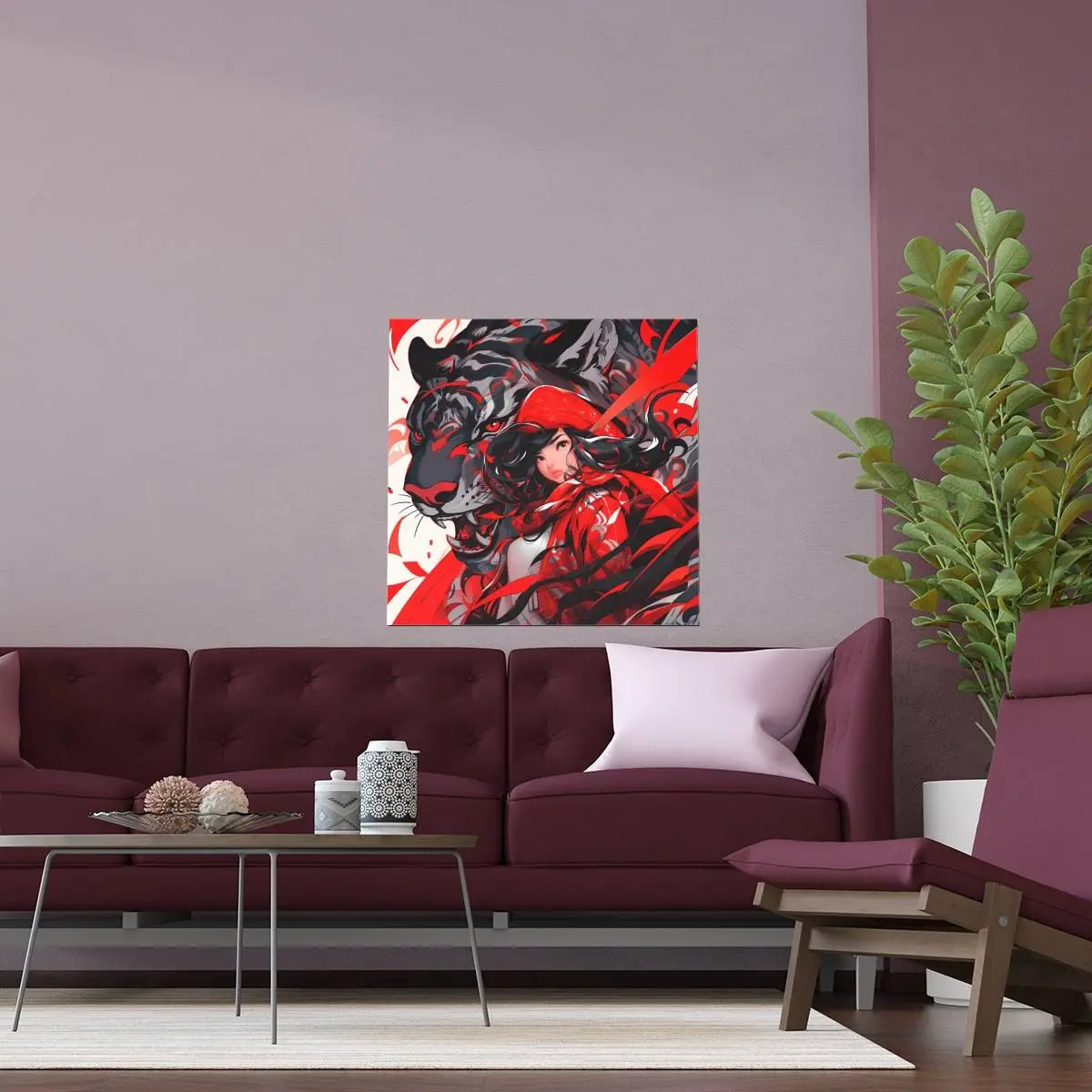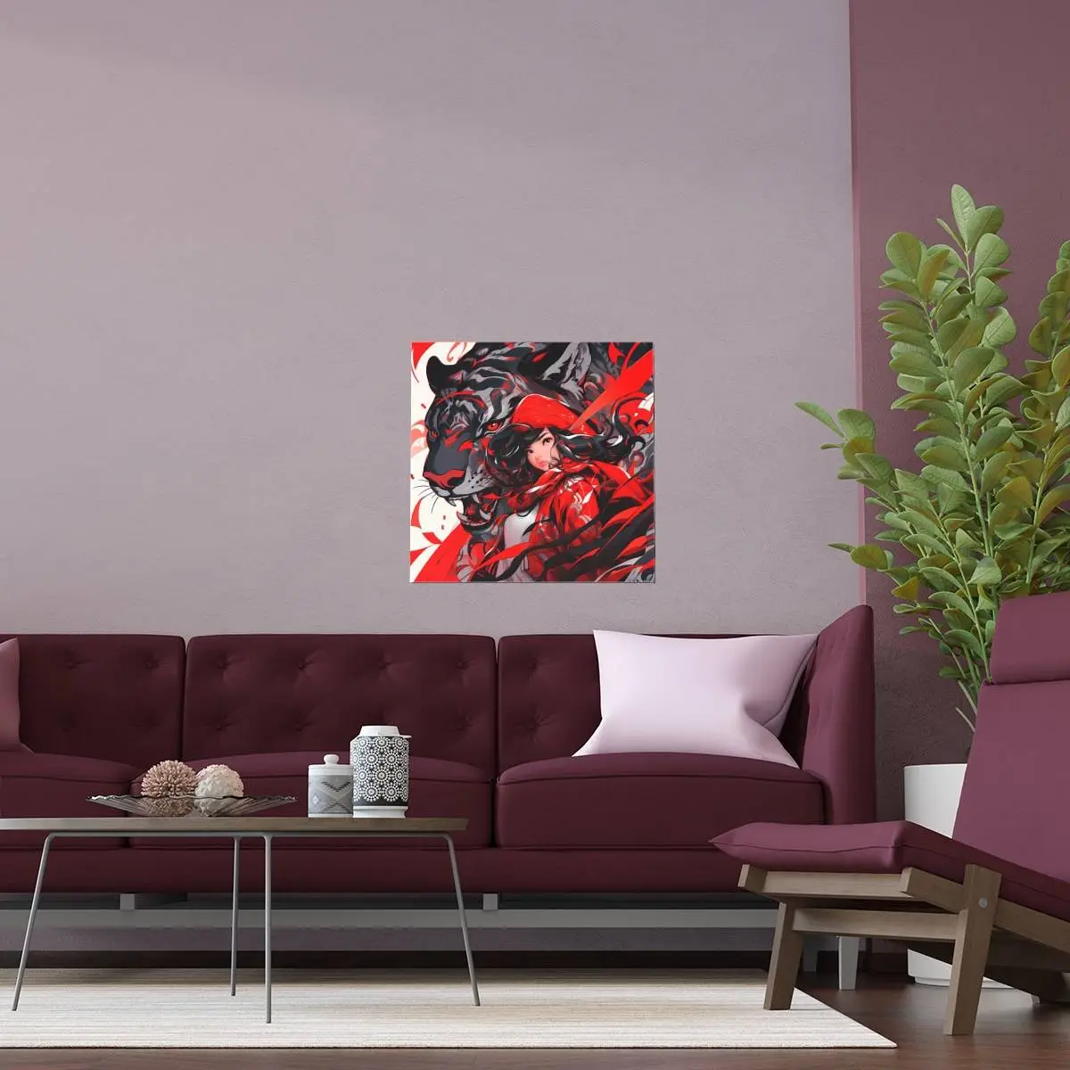 Introducing the New Girl Tiger Poster, a stunning piece of art that merges the fierce elegance of a tiger with the strength and beauty of a girl. This striking poster showcases a detailed illustration in bold red and black colors, creating a powerful visual impact that commands attention in any room.
