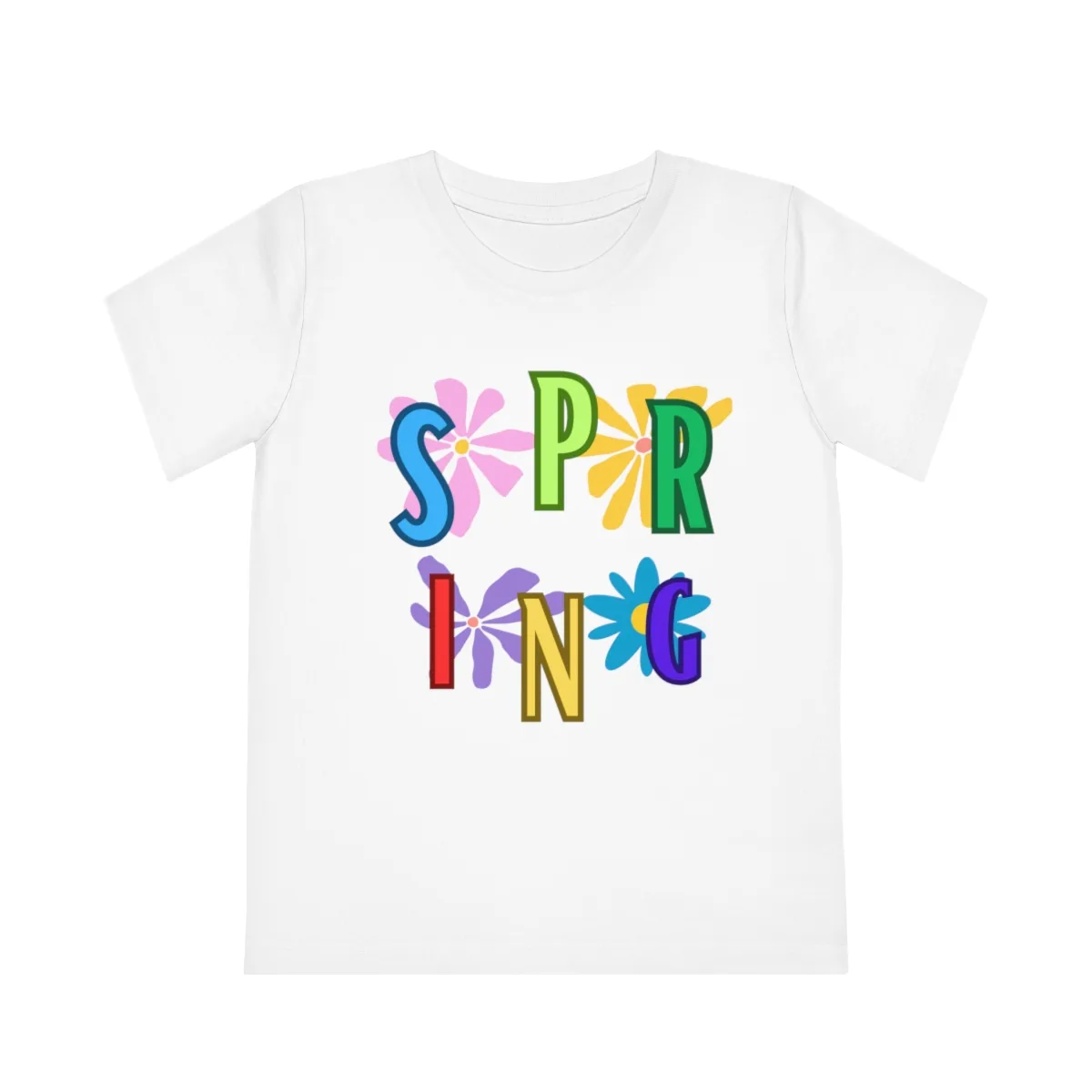 The front of the tee features a whimsical design with colorful flowers and letters, each letter having a unique flower behind it. This creates a fun and playful way for your child to learn the alphabet while enjoying the beauty of spring.