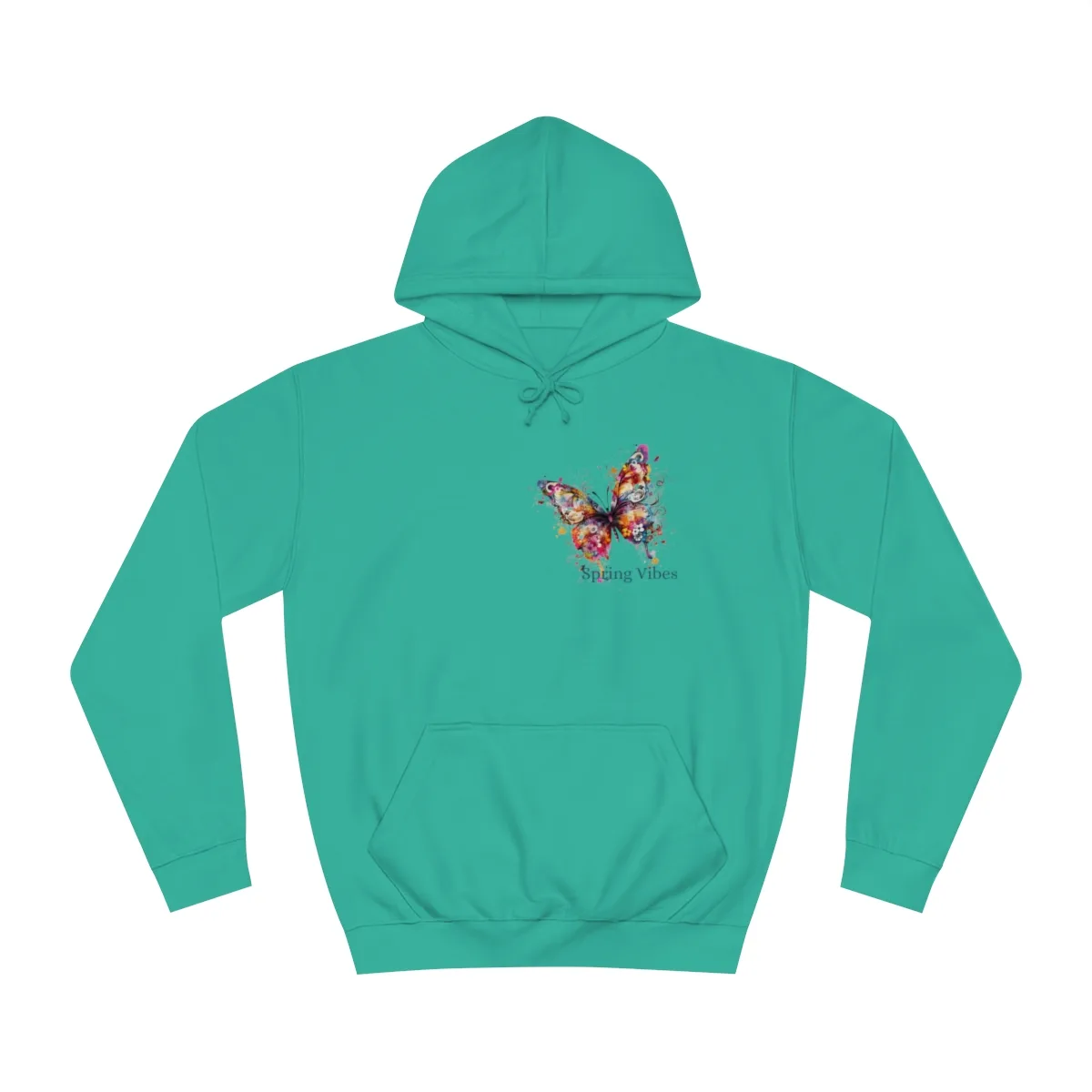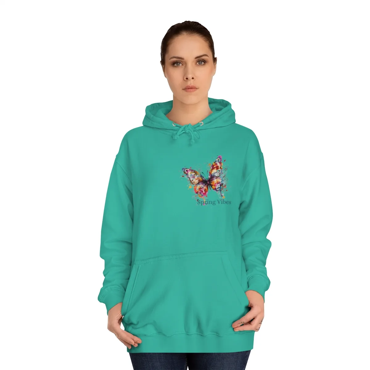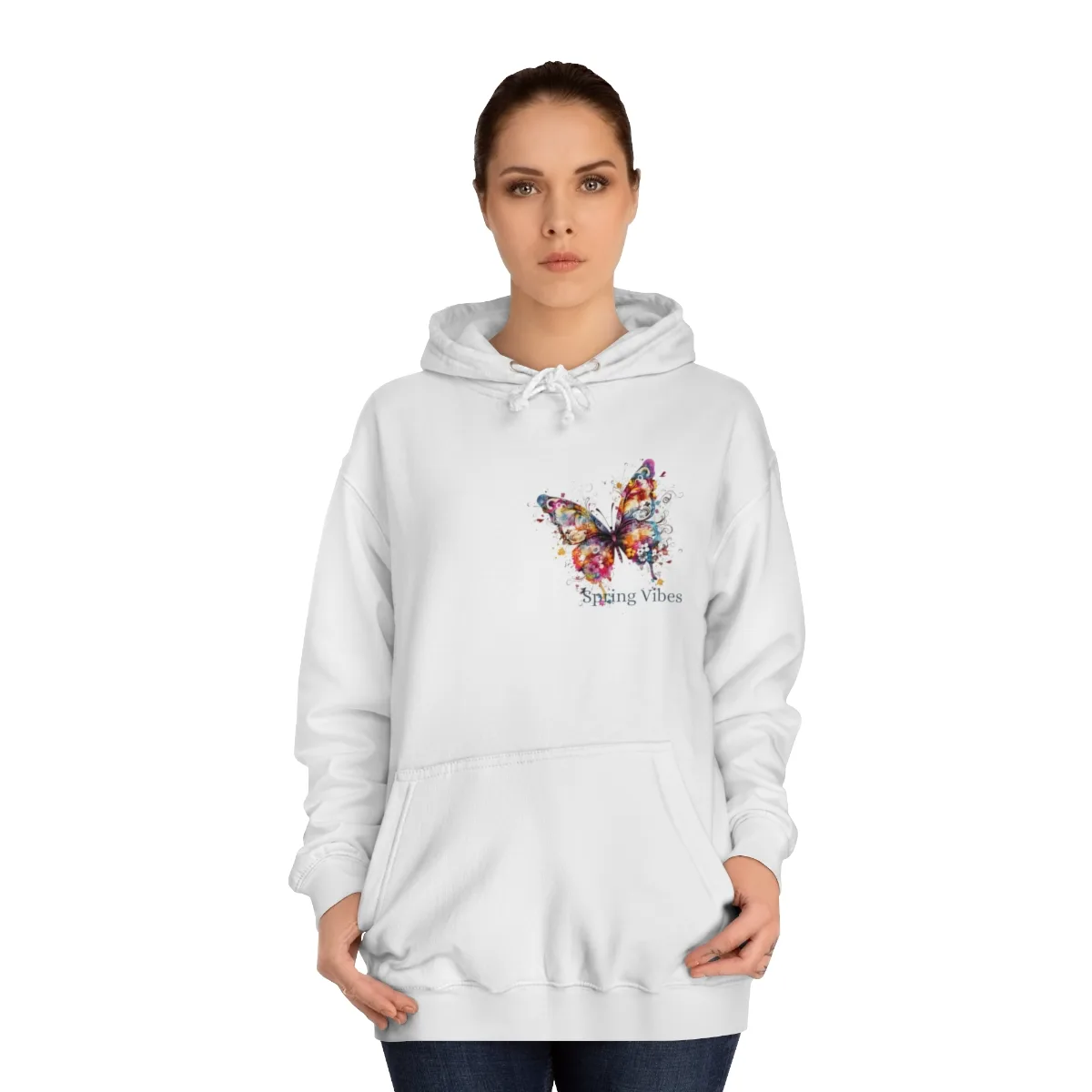 Welcome the vibrant essence of spring with our Spring Vibes Woman Hoodie! On the front left side, a beautiful and lively butterfly adorns the top, spreading its colorful wings. Just below, the words ‘Spring Vibes’ add a touch of positivity and freshness to this delightful hoodie. Flip to the back, and another vivid butterfly continues the theme, infusing more charm into the design.