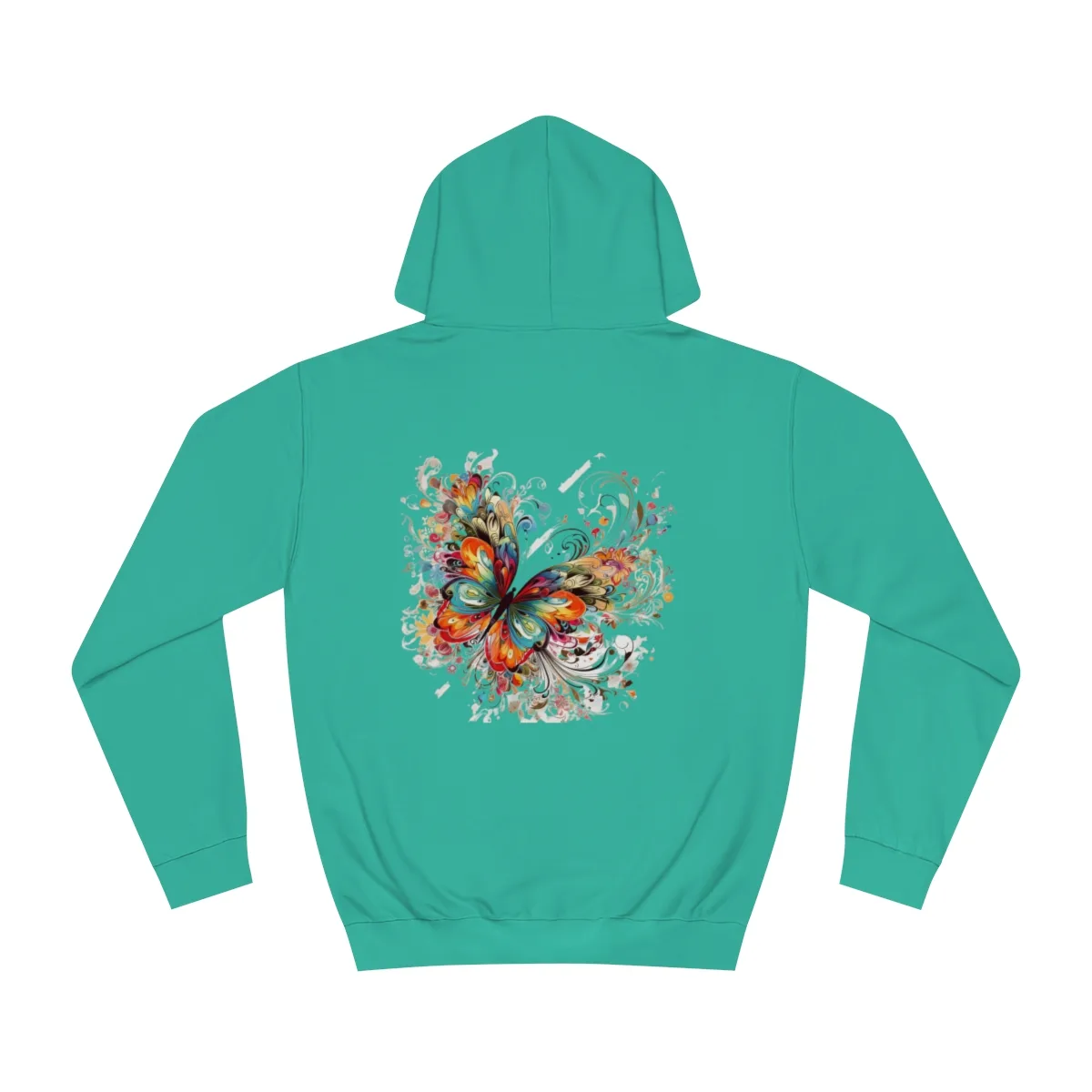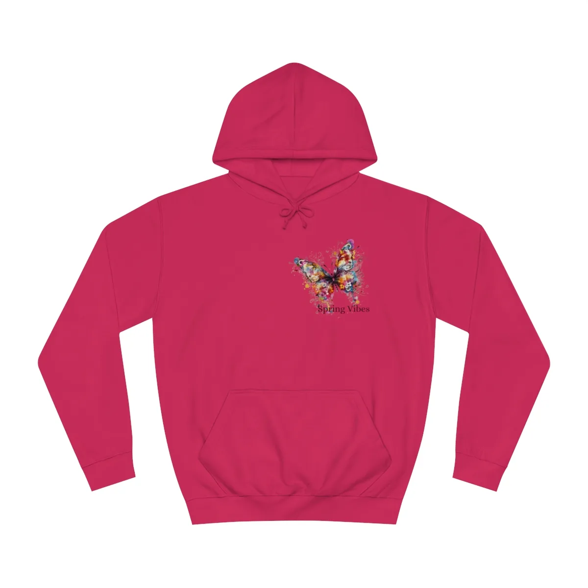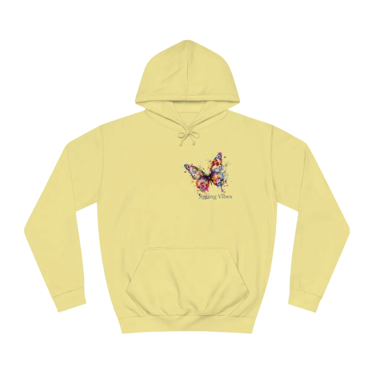 Welcome the vibrant essence of spring with our Spring Vibes Woman Hoodie! On the front left side, a beautiful and lively butterfly adorns the top, spreading its colorful wings. Just below, the words ‘Spring Vibes’ add a touch of positivity and freshness to this delightful hoodie. Flip to the back, and another vivid butterfly continues the theme, infusing more charm into the design.