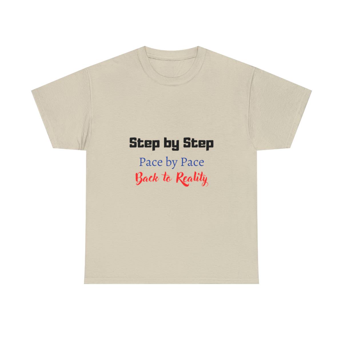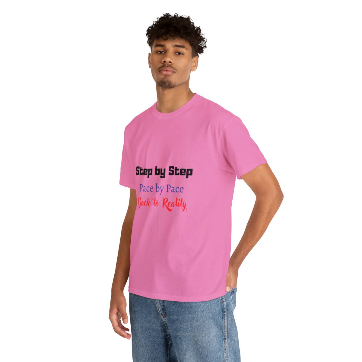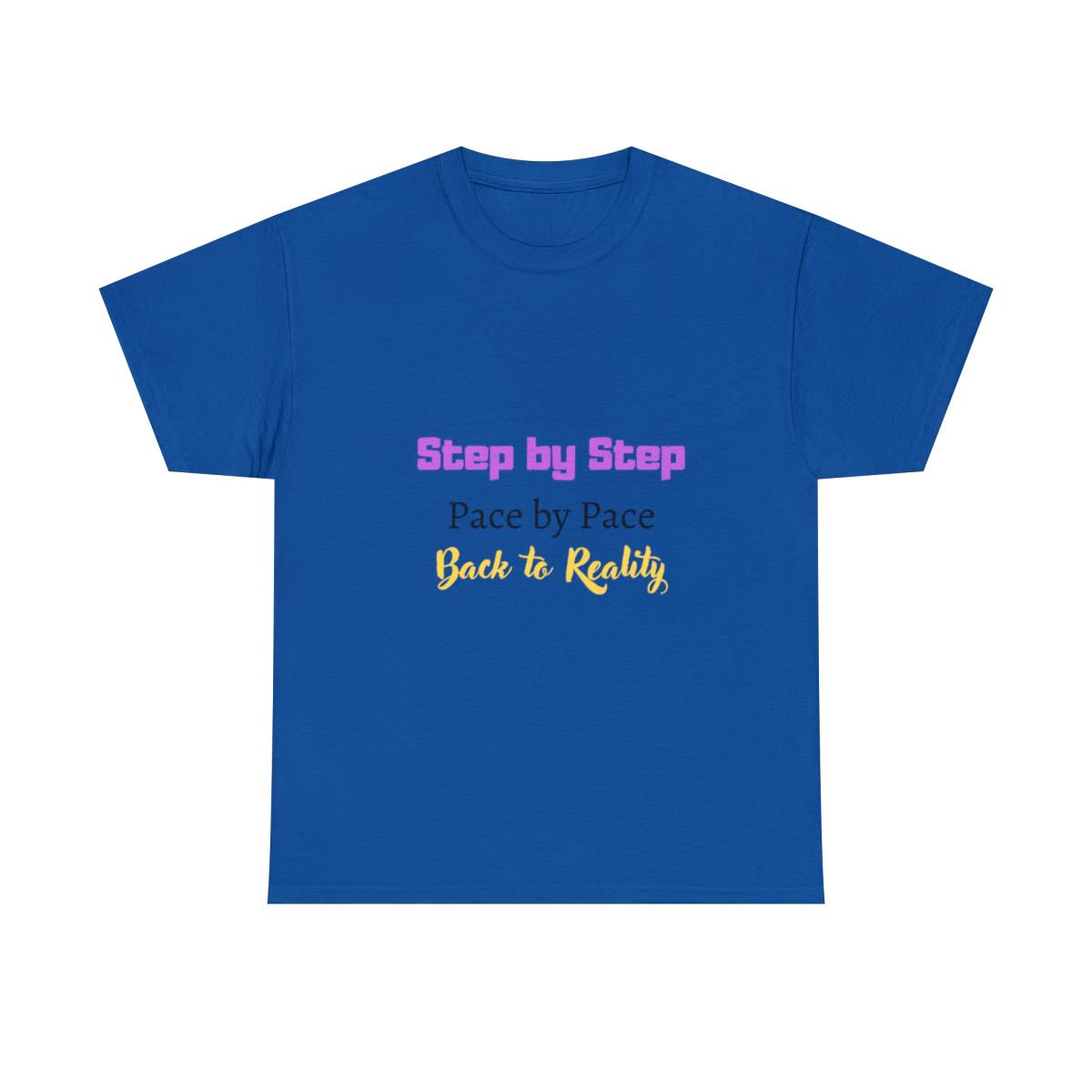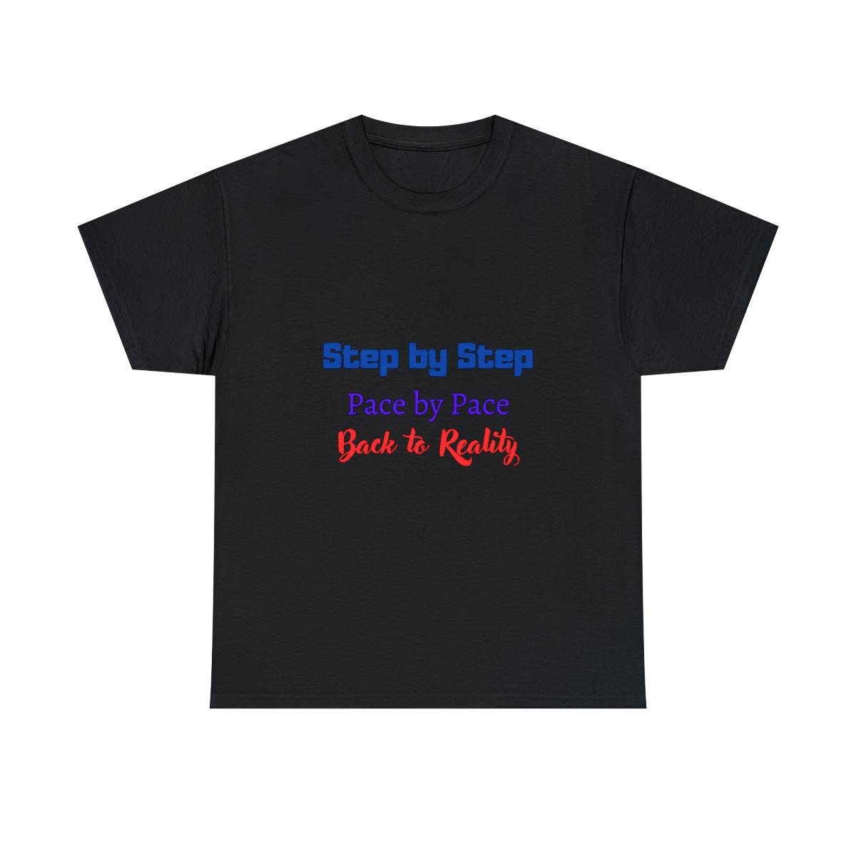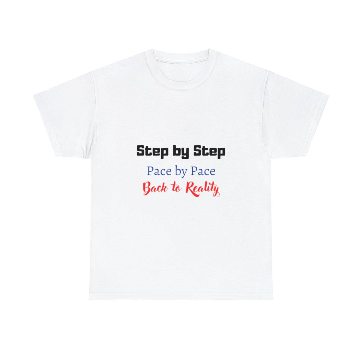 Introducing the “Step by Step” Couple T-Shirt: This shirt is all about celebrating the journey of life, together. The front features the text “Step by step, pace by pace, back to reality.”