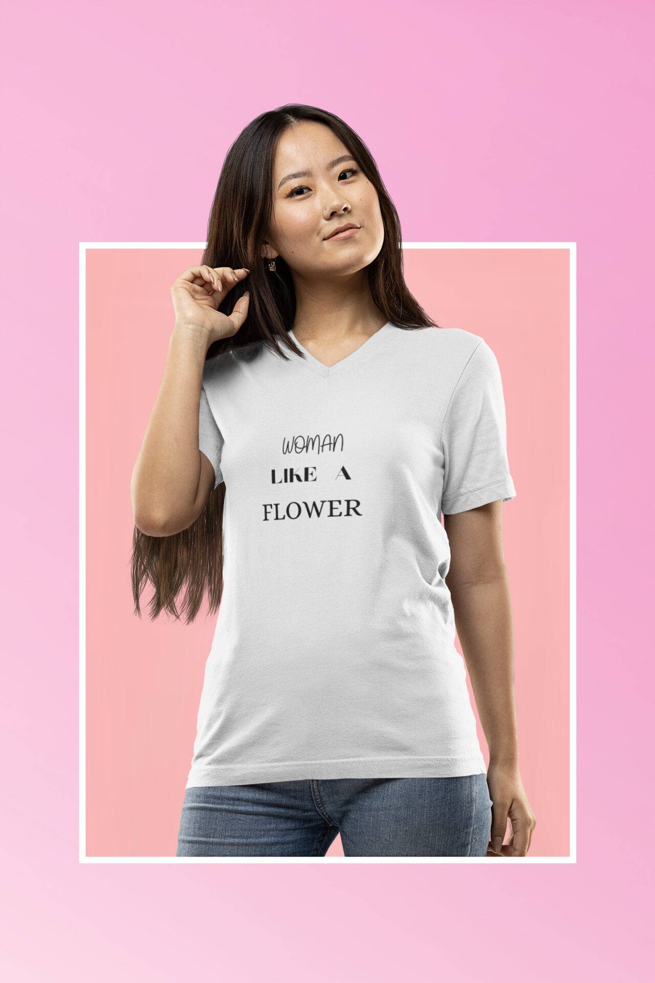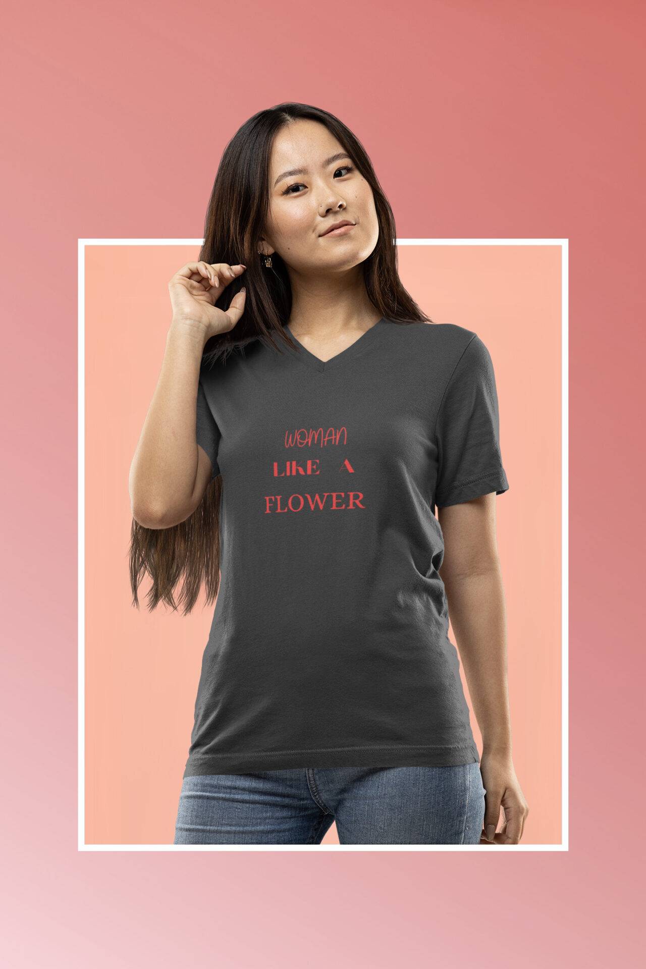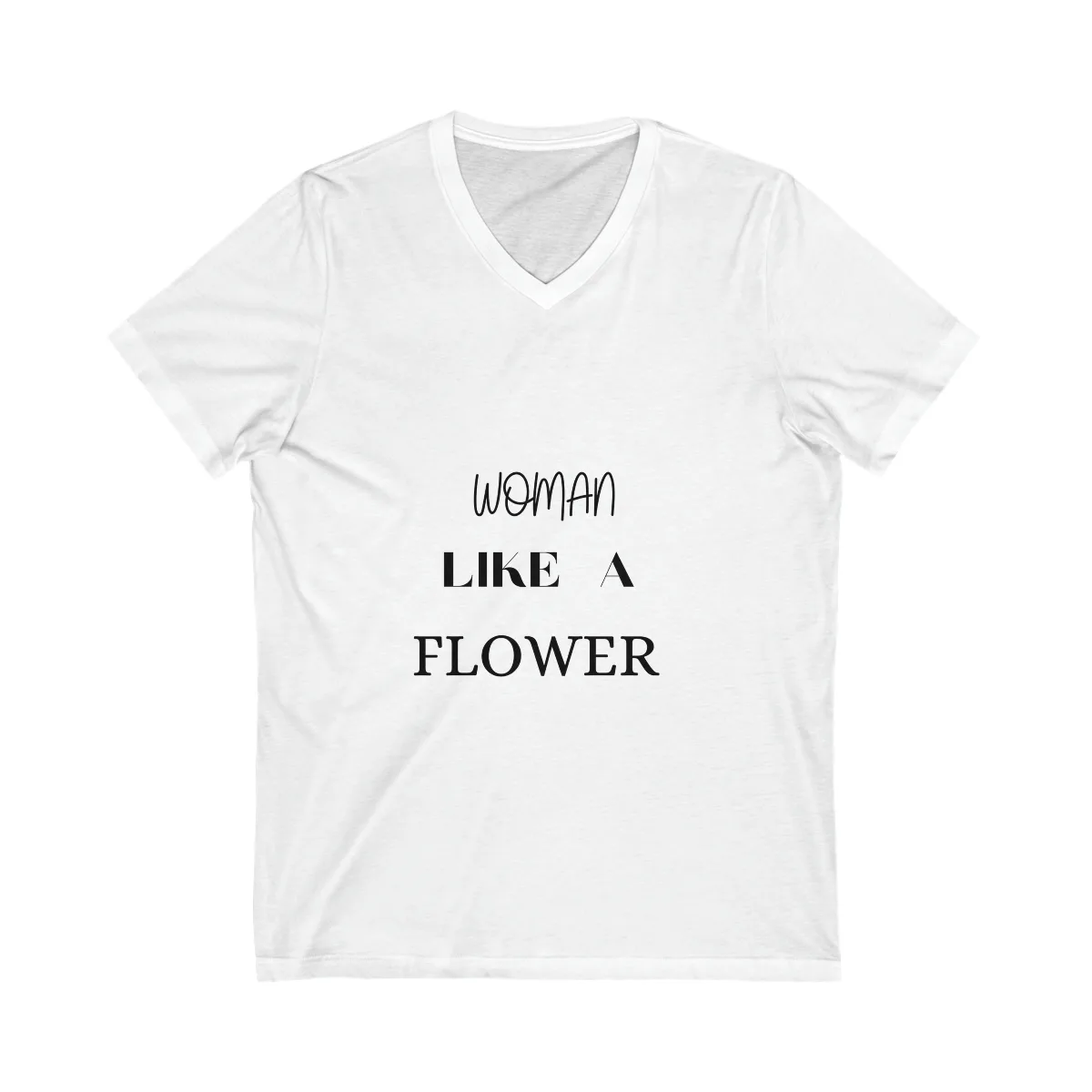 Embrace elegance with our ‘Woman Like A Flower’ T-shirt! The front proudly showcases the empowering text ‘Woman Like A Flower.’