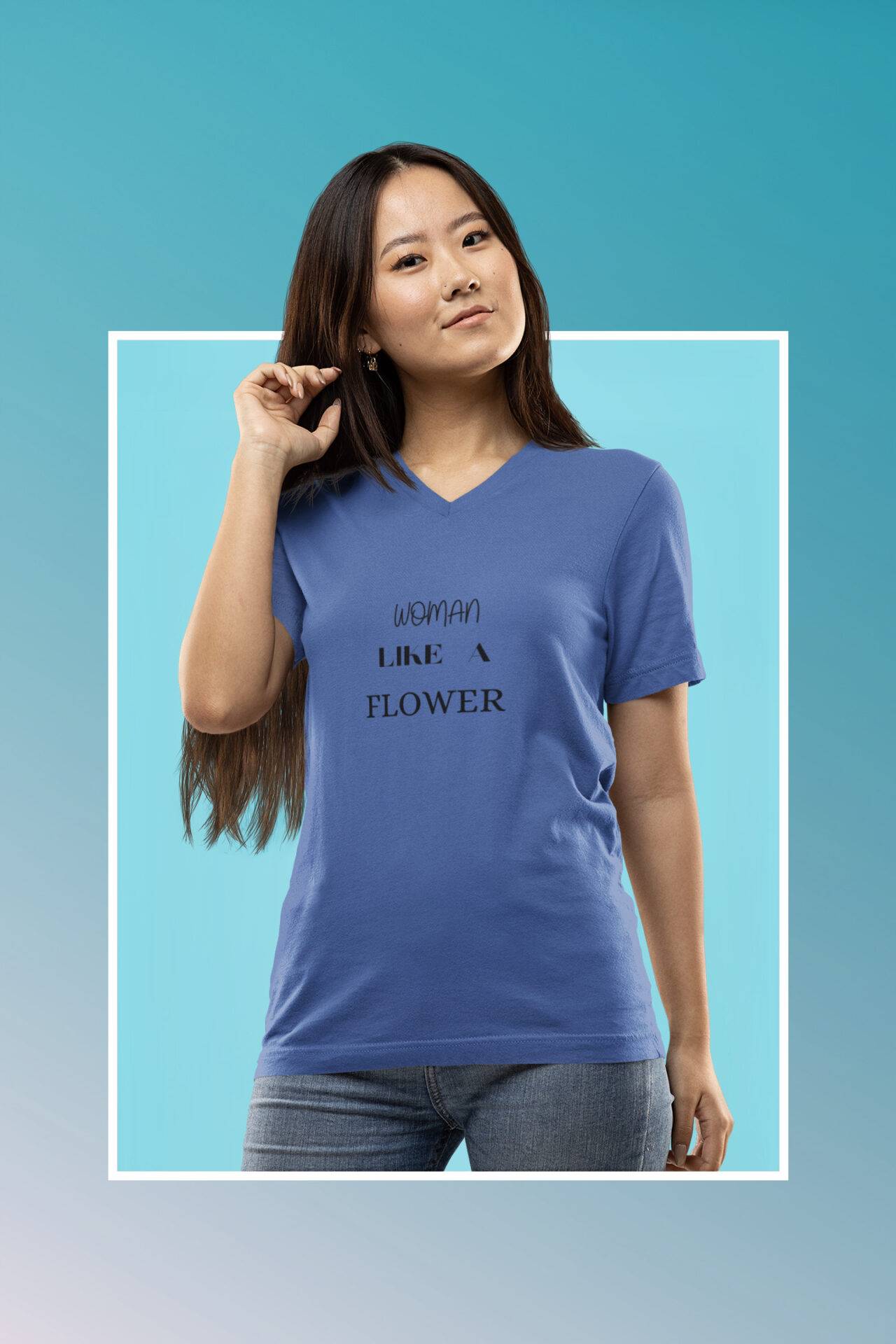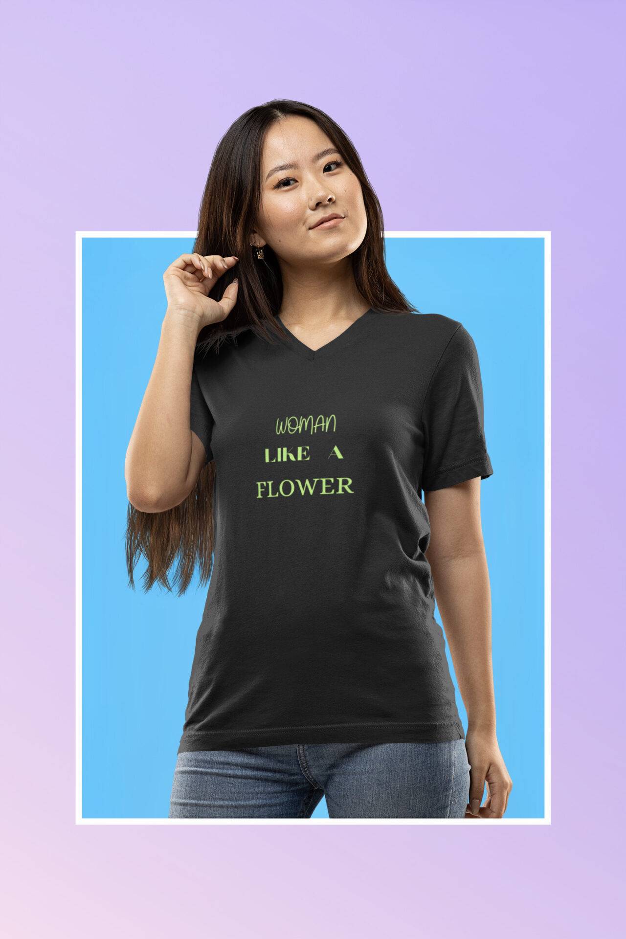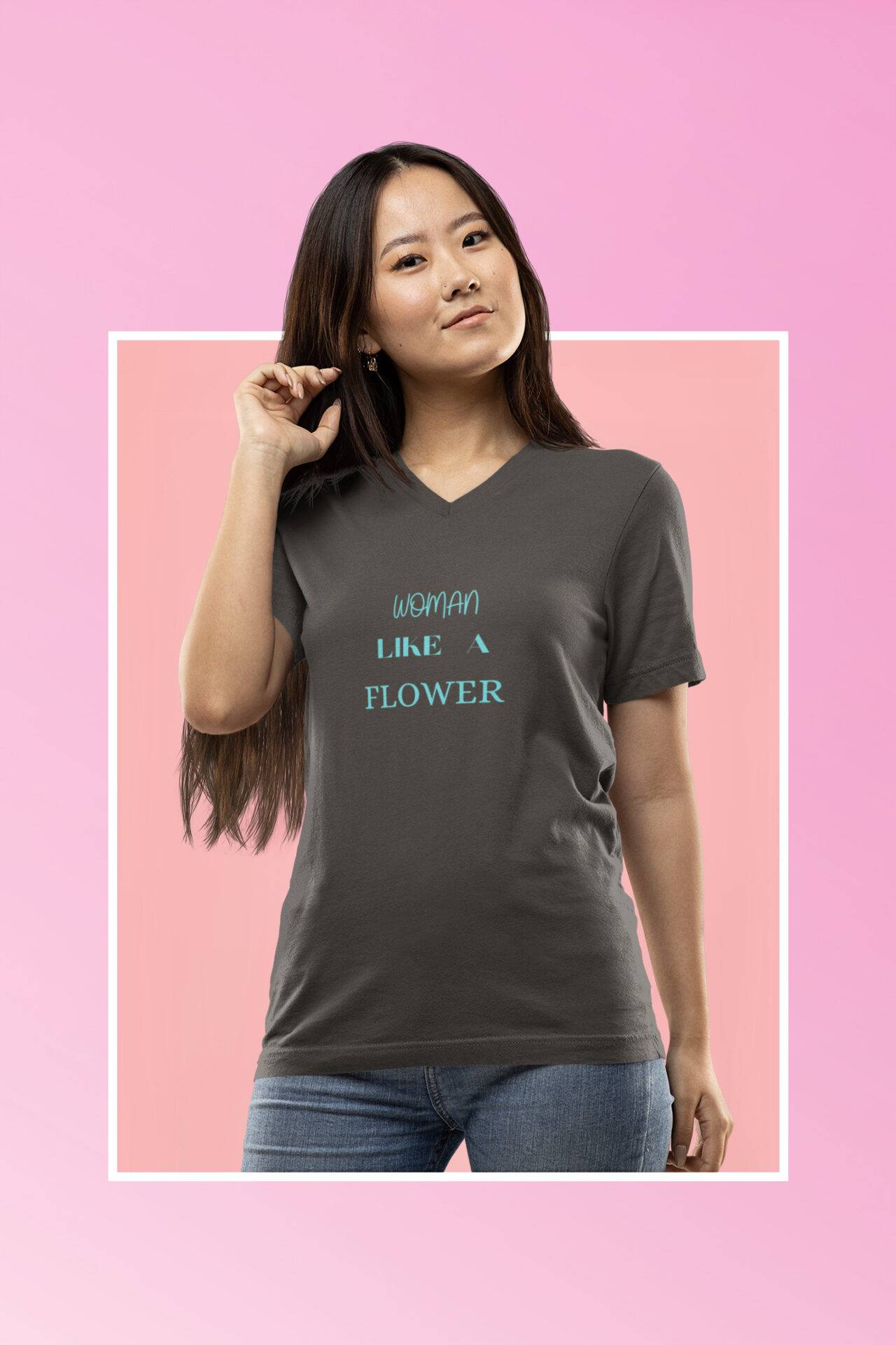 Embrace elegance with our ‘Woman Like A Flower’ T-shirt! The front proudly showcases the empowering text ‘Woman Like A Flower.’