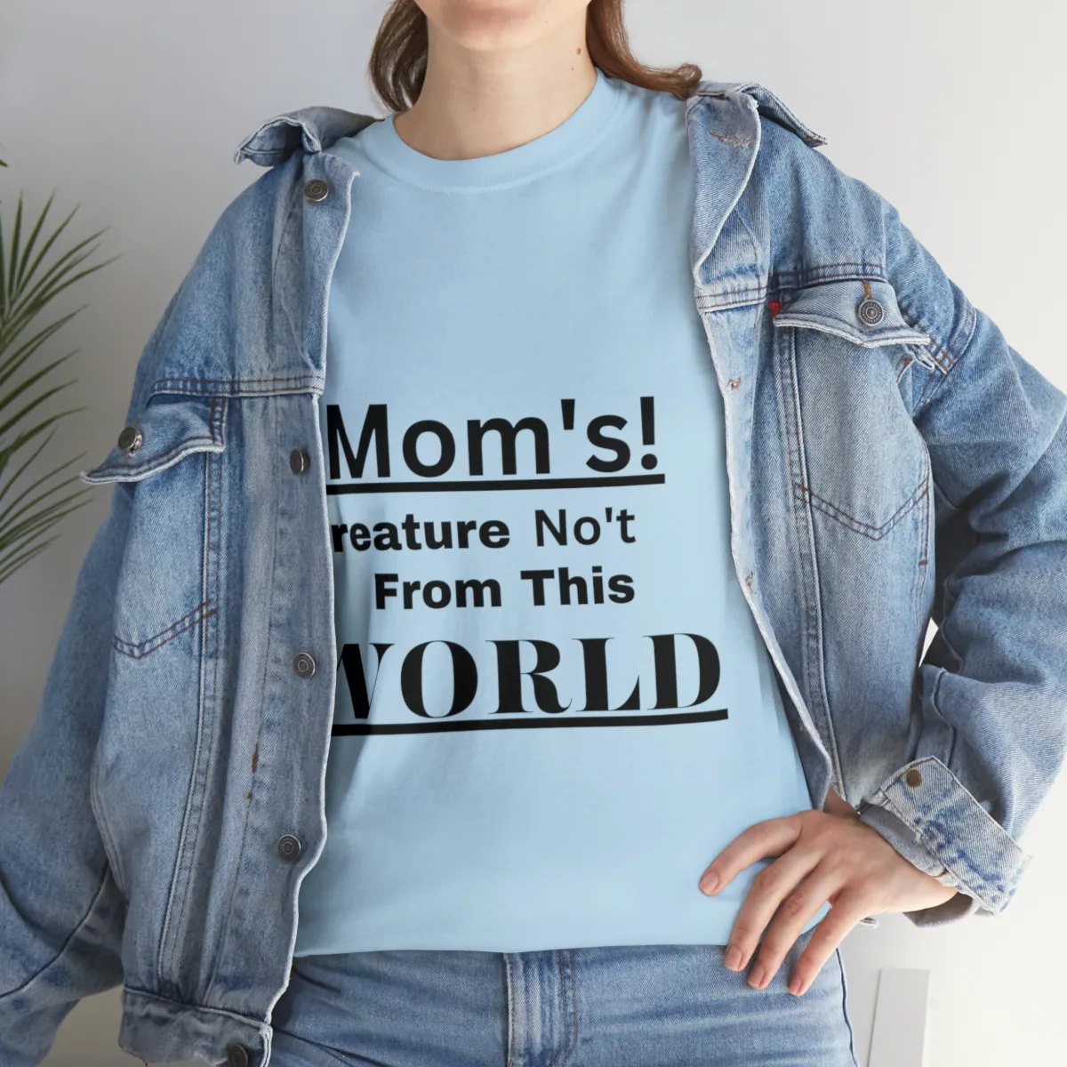 Introducing the charming “Women’s Creature Tee” – a special shirt that celebrates the unique bond between moms and their children. On the front, you’ll find the heartwarming text “Mom’s Creature, Not From This World” – a beautiful reminder of the magical love and connection between a mother and child.